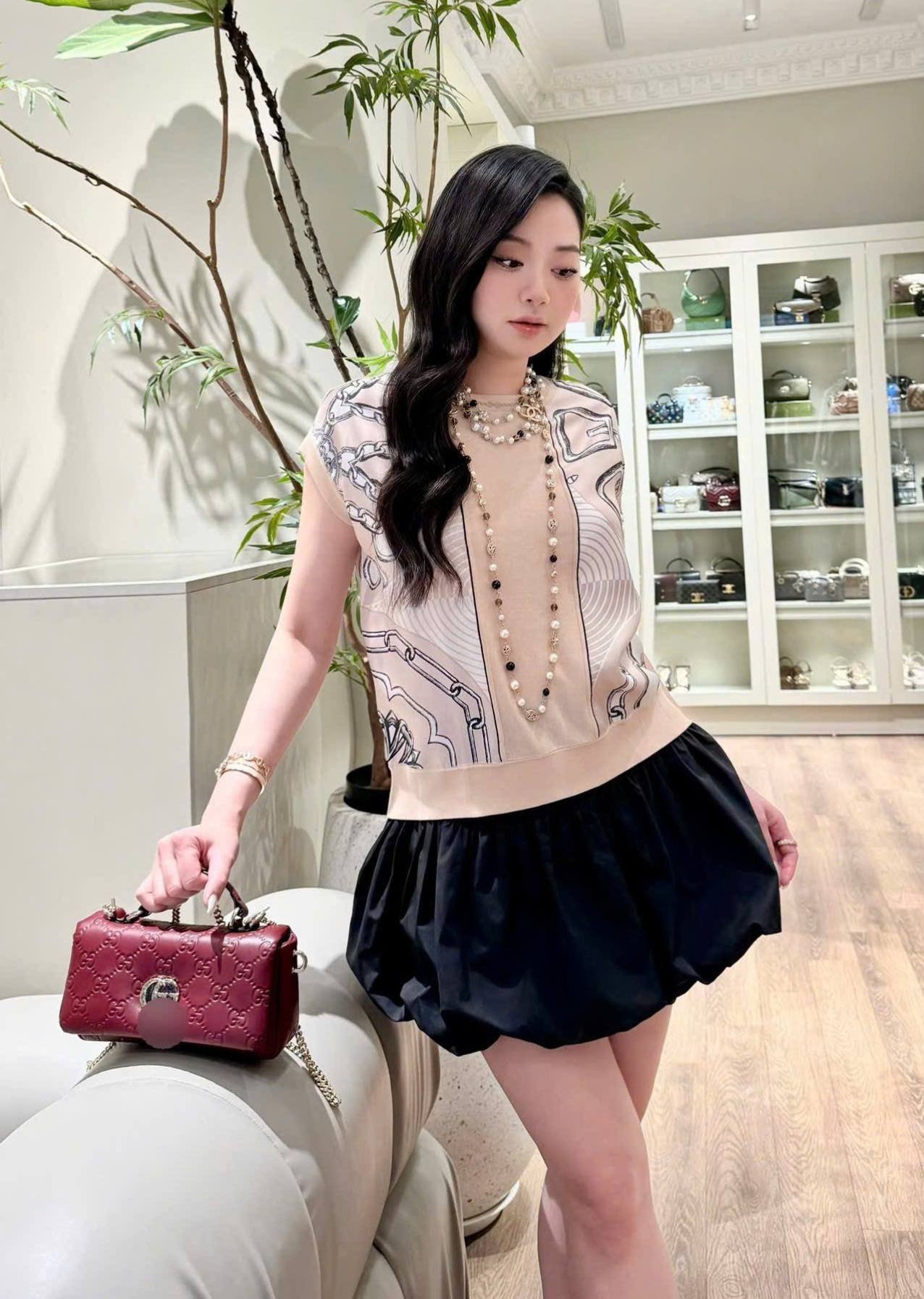 Áo H.M với họa tiết độc đáo giúp outfit trở nên nổi bật, khẳng định phong cách sang trọng và khác biệt.