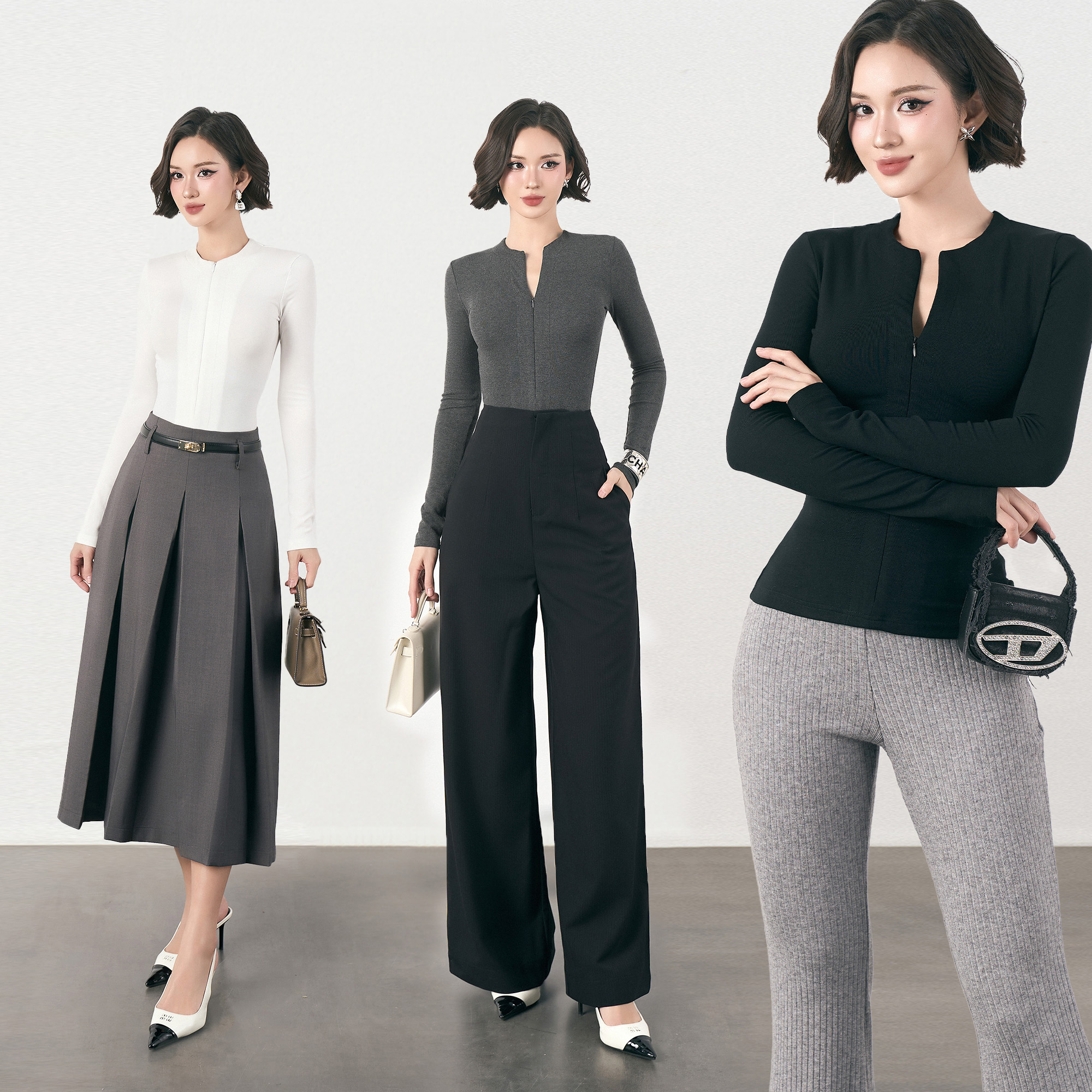 Một trong những điều tuyệt vời của của em áo này chính là khả năng phối đồ linh hoạt và tính ứng dụng cực kỳ cao. Các chị có thể dễ dàng kết hợp cùng với quần ống suông, chân váy xếp ly, chân váy chữ A hoặc bất kỳ items đã có sẵn trong tủ đồ. Vừa nhanh gọn, tiện lợi, tiết kiệm thời gian mà vẫn rất chỉn chu và xinh đẹp, phù hợp với mọi hoàn cảnh, bất kể là đi chơi hay đi làm văn phòng.