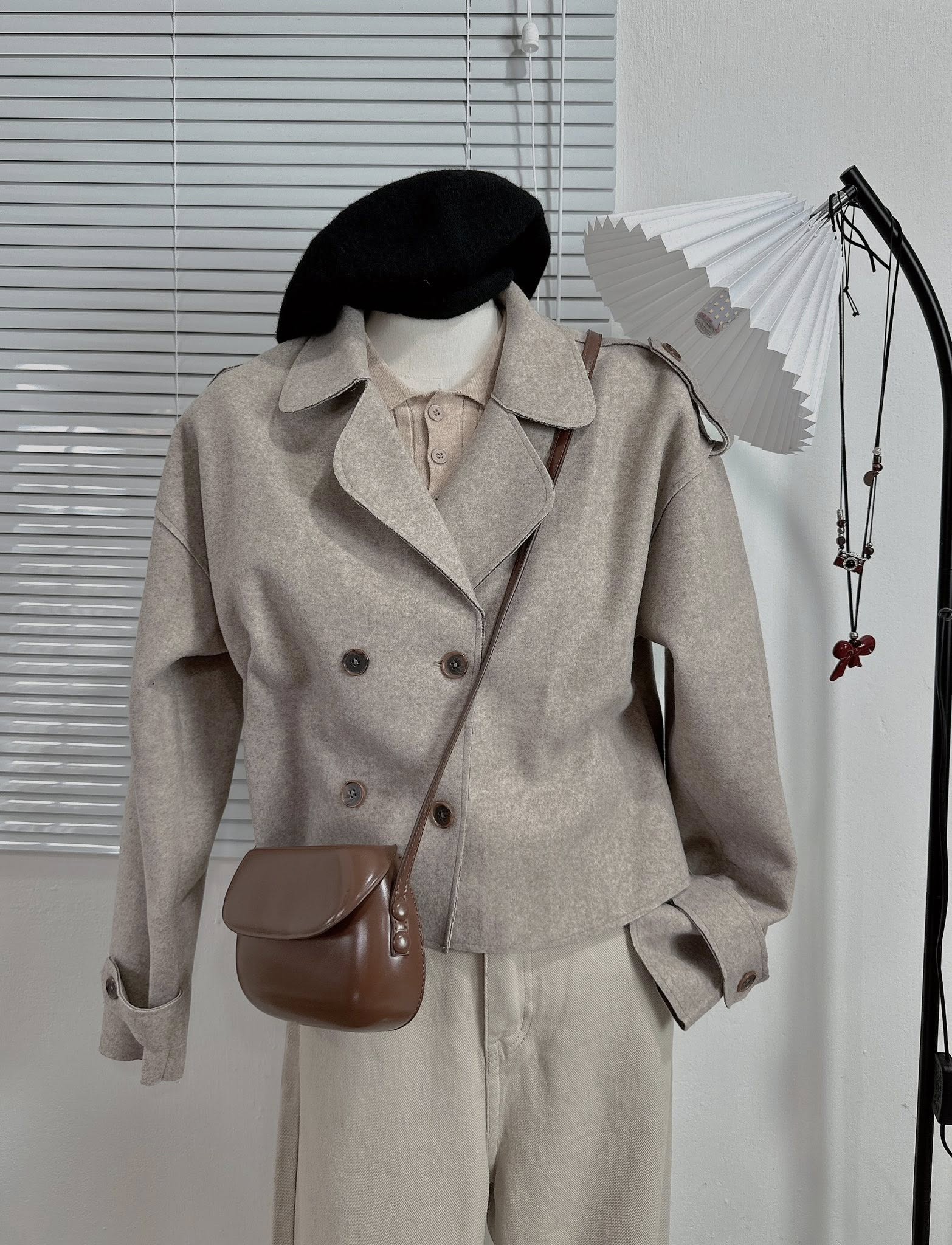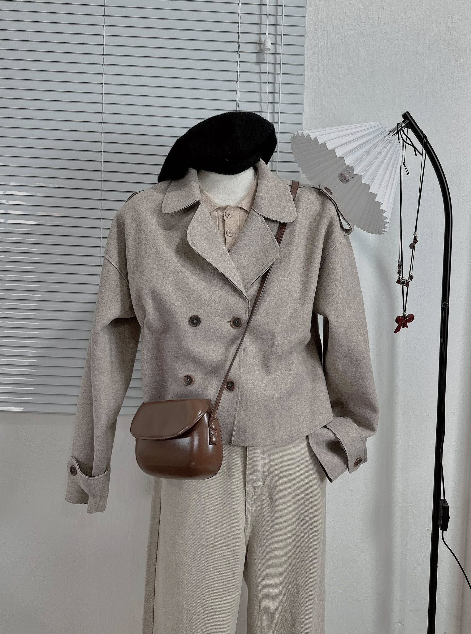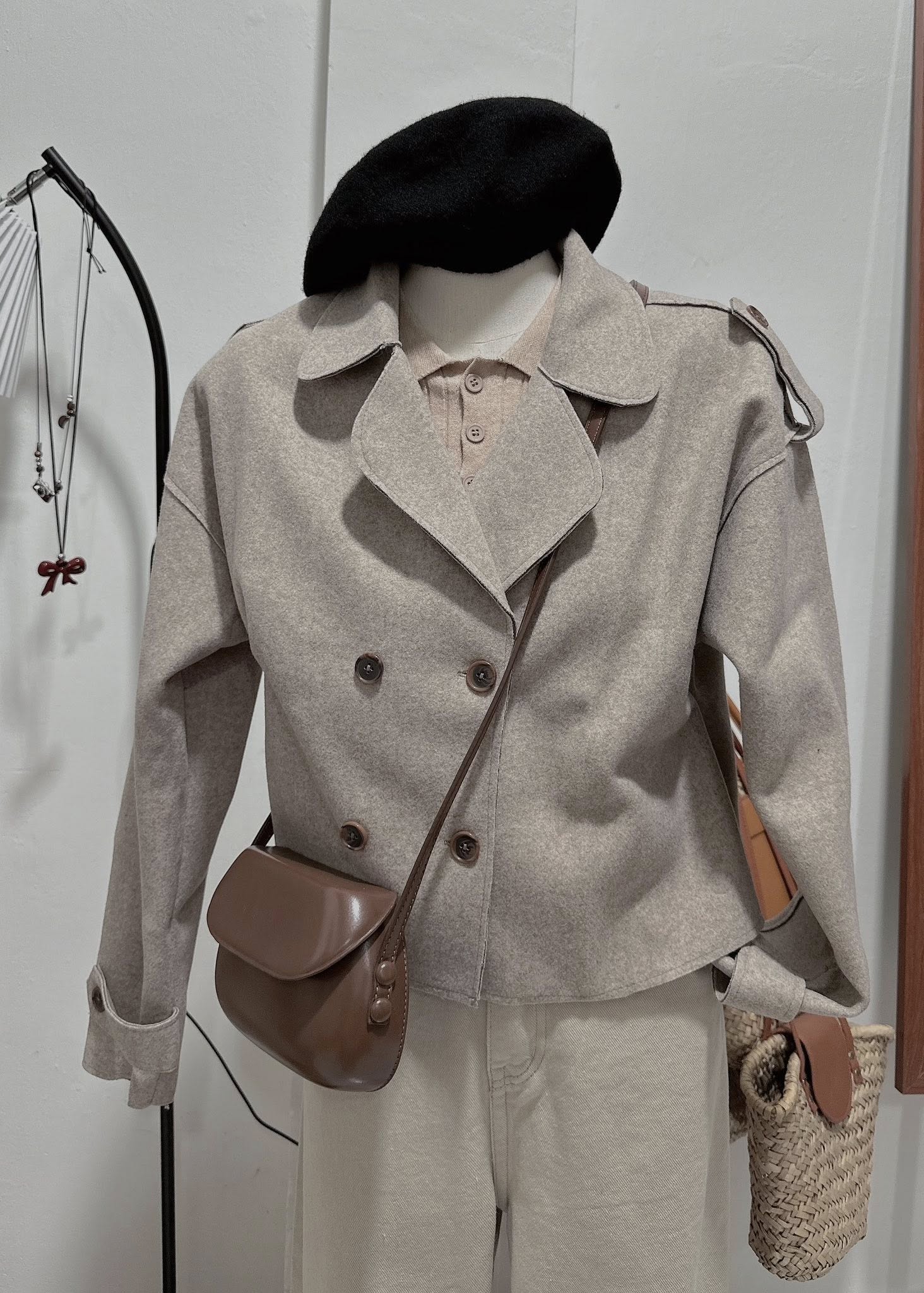 Tông màu trung tính dễ phối, áo khoác dạ dáng ngắn giúp tôn dáng, phối cùng quần suông là đã có ngay set đồ xinh xắn cho cả ngày dài ☕🤎