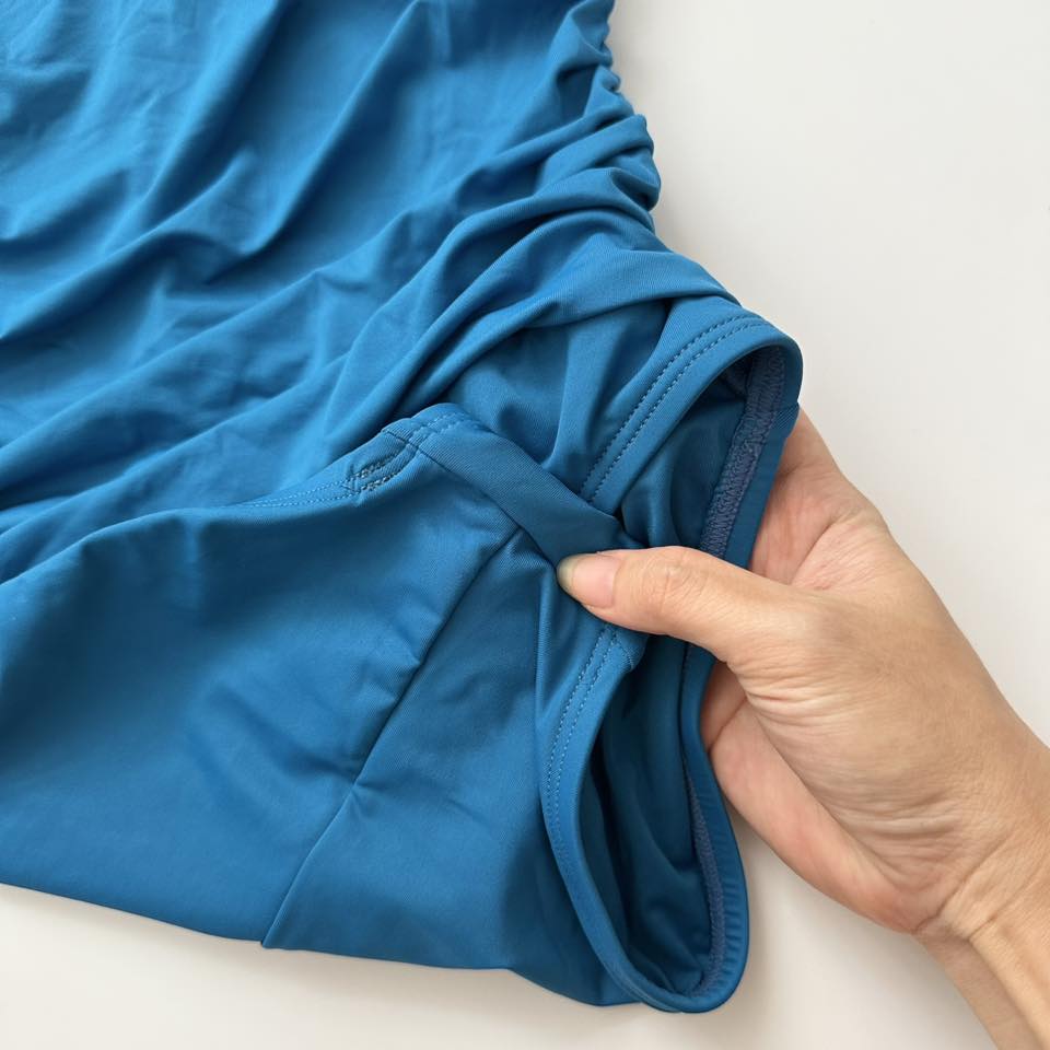 👉 Phía trước bụng có nhún nhẹ, chất co giãn tốt, mềm