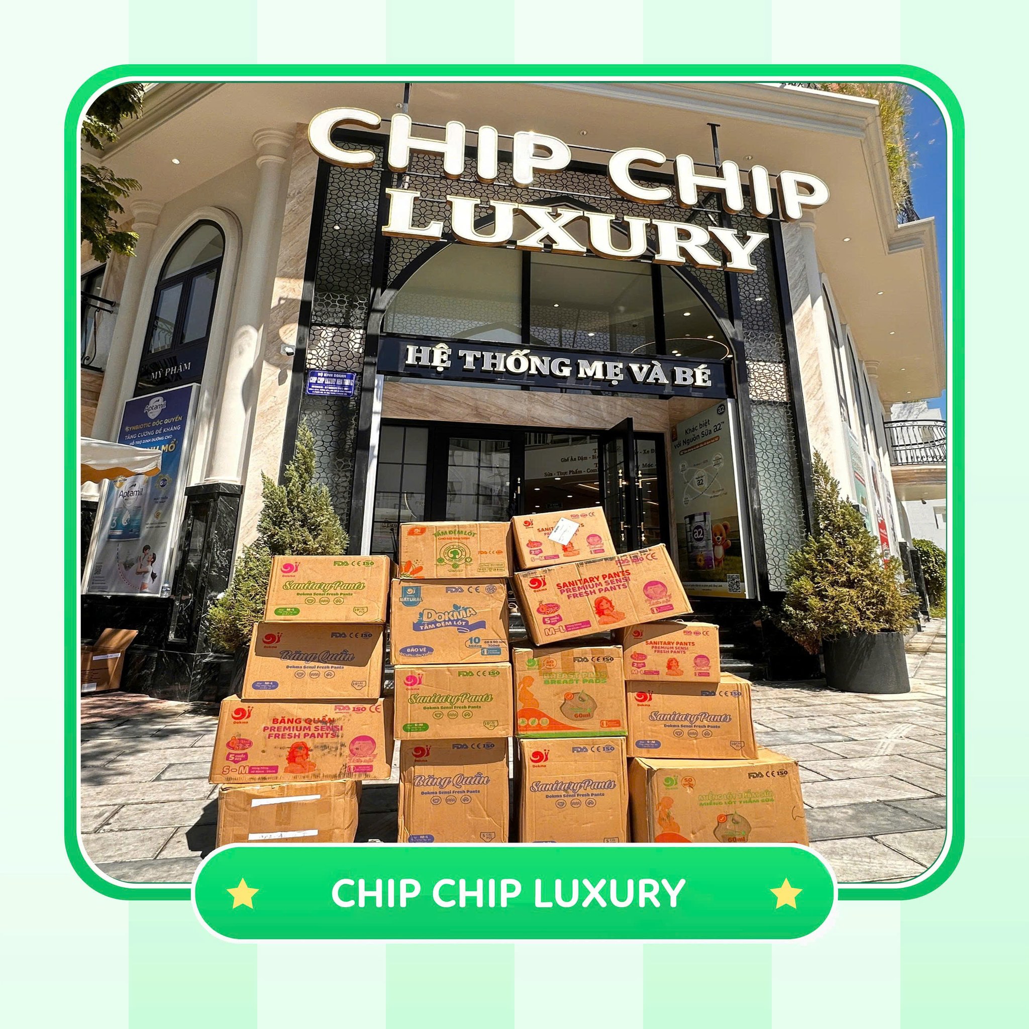 👉 Các mẹ ghé ngay Chip Chip Luxury – Nha Trang để mang về cho bé yêu sự an toàn & êm ái mỗi ngày cùng bỉm Dokma.