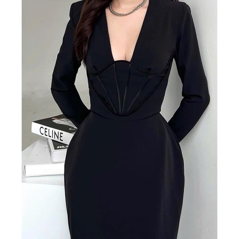 Một thiết kế đầy nét quyến rũ và quyền lực cho nàng thể hiện trọn vẹn cá tính. Chiếc đầm liền thân với đường chiết eo rõ ràng kết hợp với cổ áo xẻ sâu làm tăng sự quyến rũ và thu hút cho nàng mỗi khi diện.