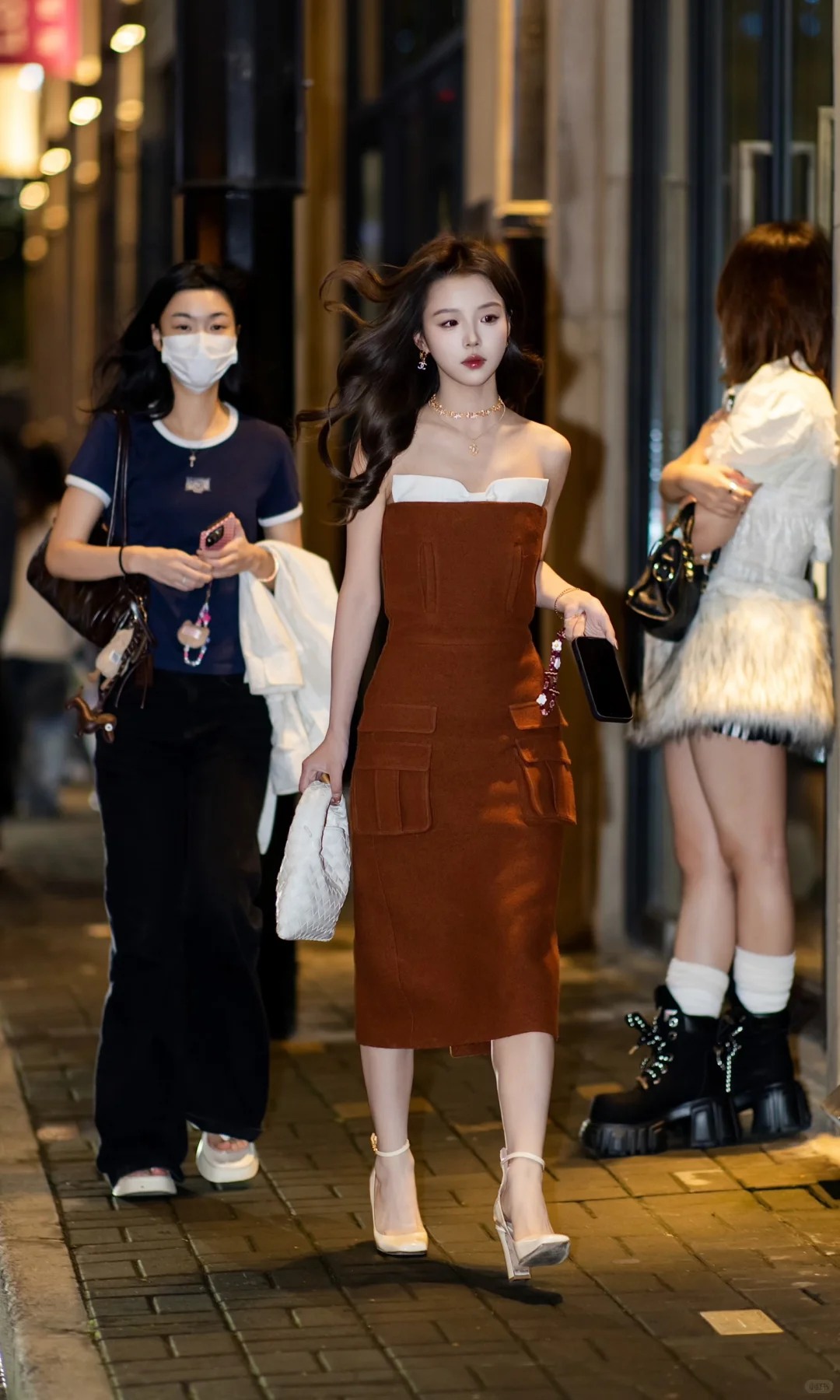 The brown wool dress from SHUSHU/TONG FW25 features a strapless silhouette accented by a delicate bow, while the cargo-inspired skirt with utility pockets creates a balance between femininity and a modern, effortless attitude.