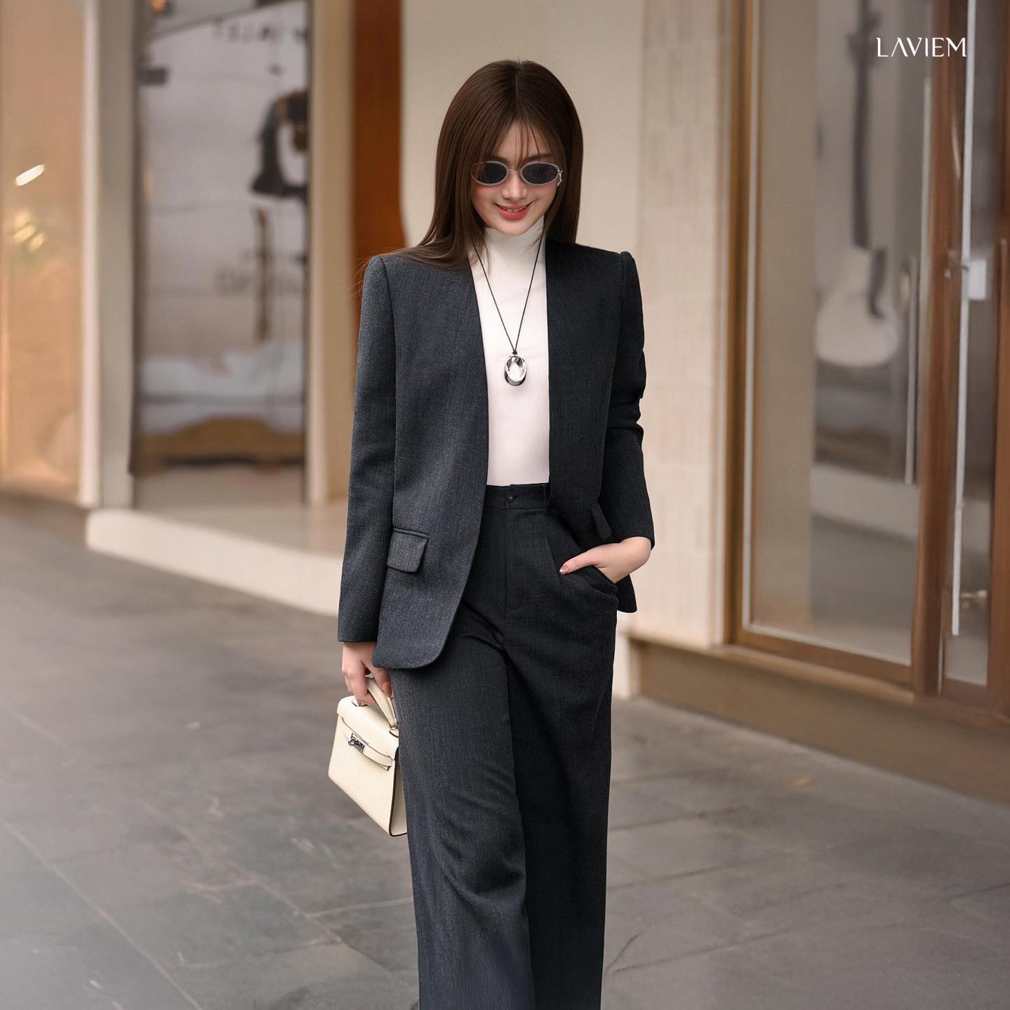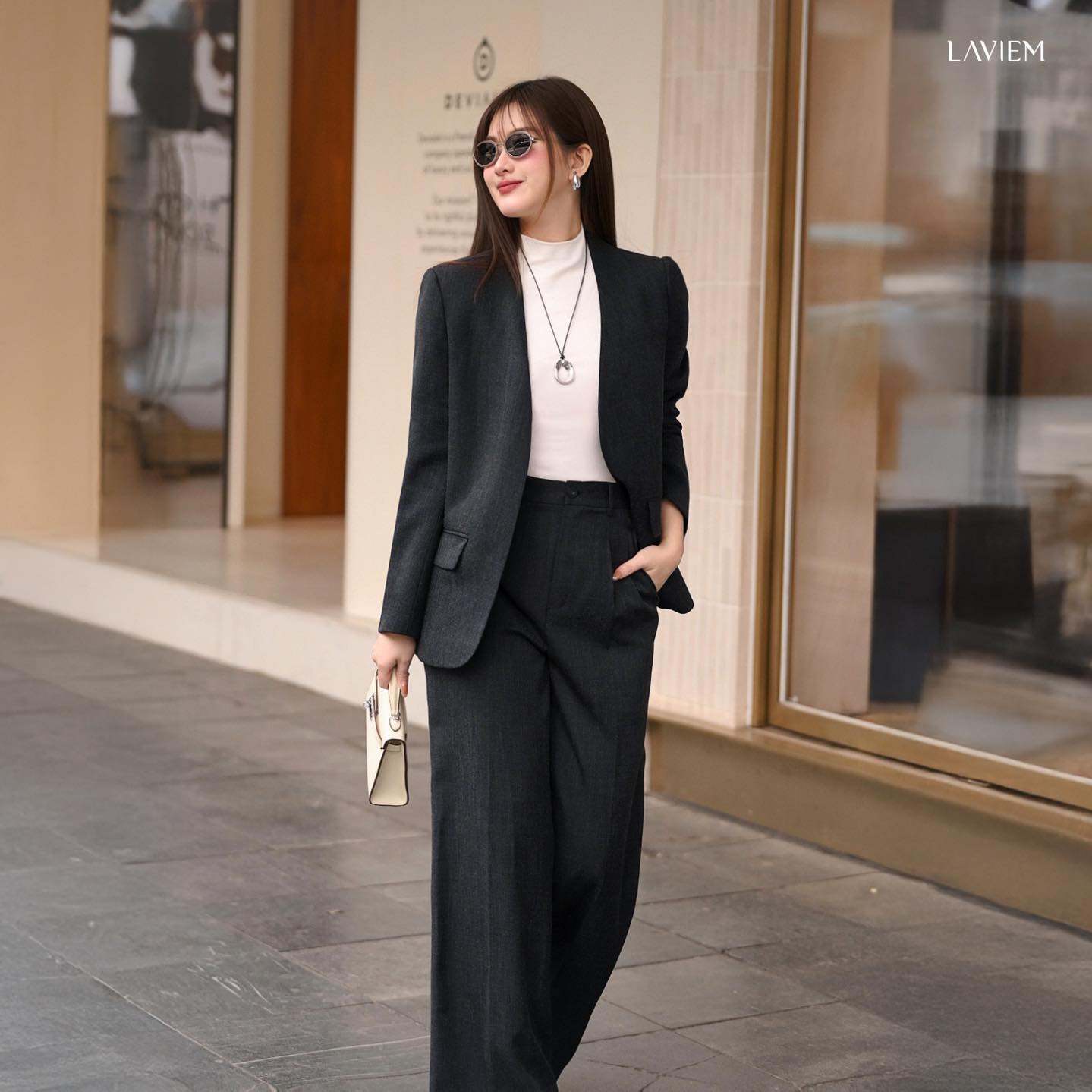 Với phom dáng chuẩn mực và đường cắt tinh tế, Laly blazer không chỉ tôn lên vẻ lịch thiệp mà còn mang lại sự thoải mái tối đa cho nàng công sở bận rộn.