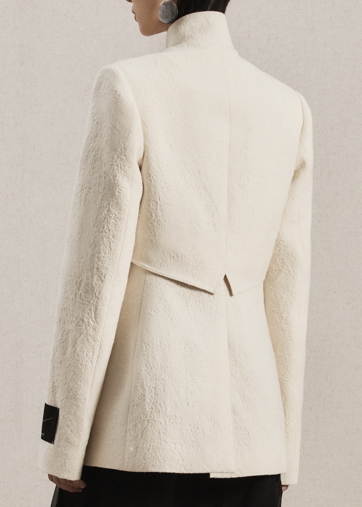 Contour Blazer mở đầu mùa thu đông bằng chất liệu wool dệt nổi tỉ mỉ, mang lại cảm giác ấm áp vừa đủ cho những ngày giao mùa. Trên nền vải mềm, các đường cắt khối được xử lý tinh gọn để tạo nên cấu trúc đối xứng và hiệu ứng layer, làm nổi bật tinh thần kiến trúc đặc trưng của thiết kế.