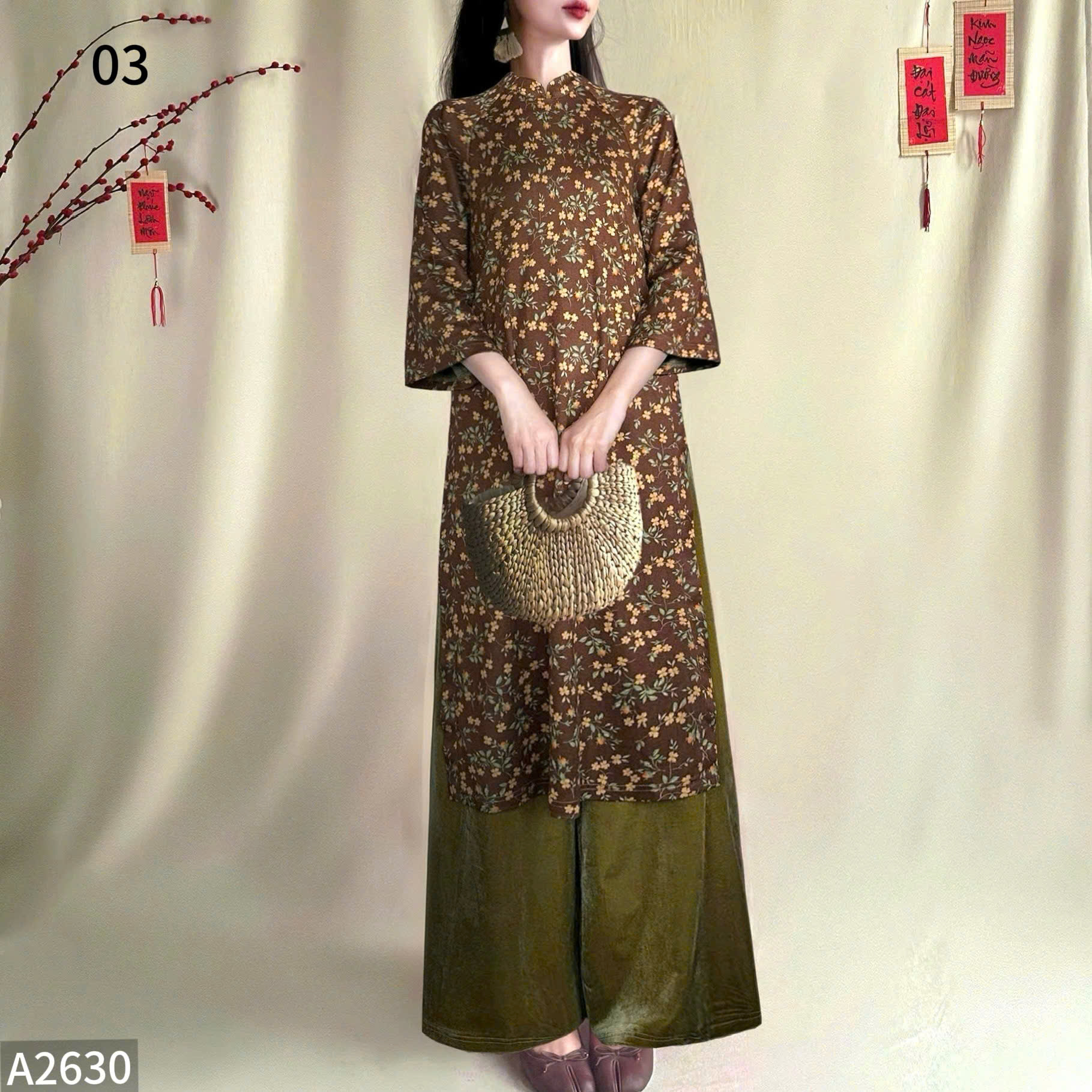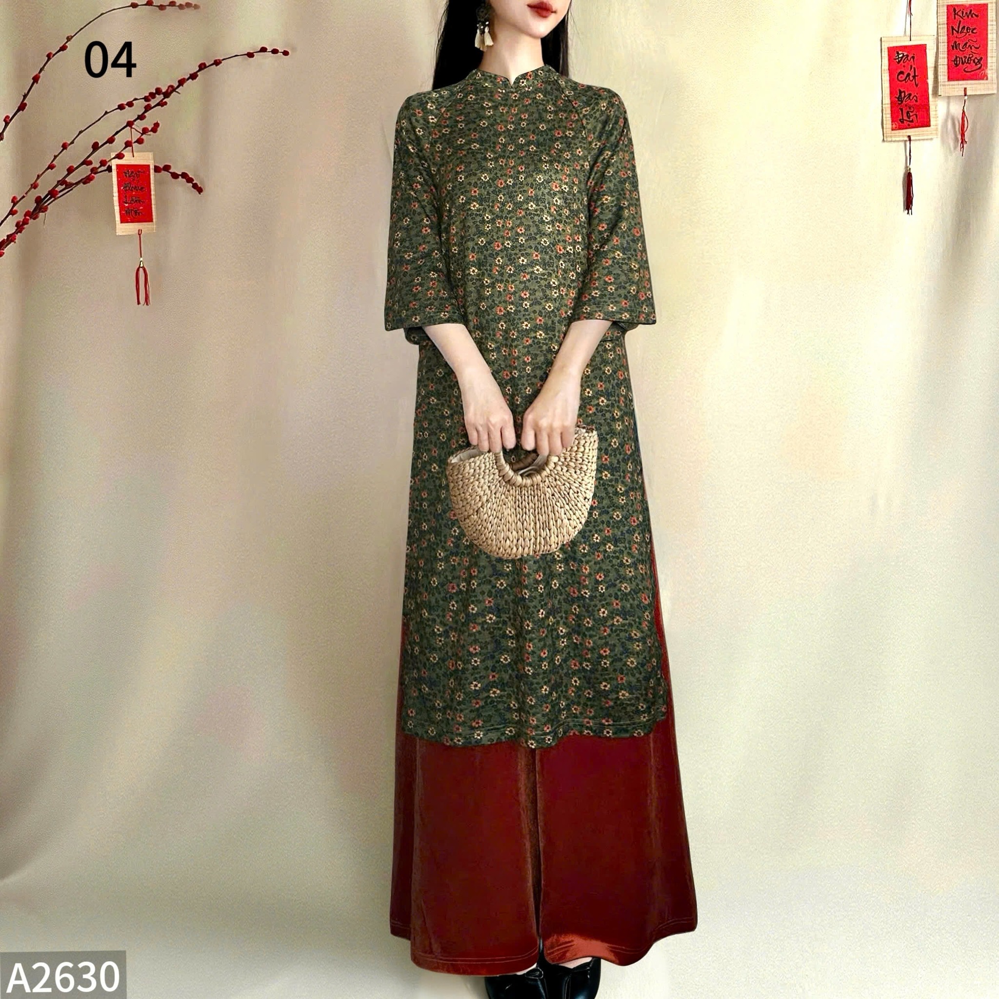 #Áo #Dài #Mộc #Miên #Bộ #sưu #tập #A2630Lấy #cảm #hứng #từ #vẻ #đẹp #mộc #mạc #và #tự #nhiên #thiết #kế #tôn #vinh #sự #tinh #tế #trong #từng #chi #tiết.Chất #liệu #len #lụa #dệt #kim