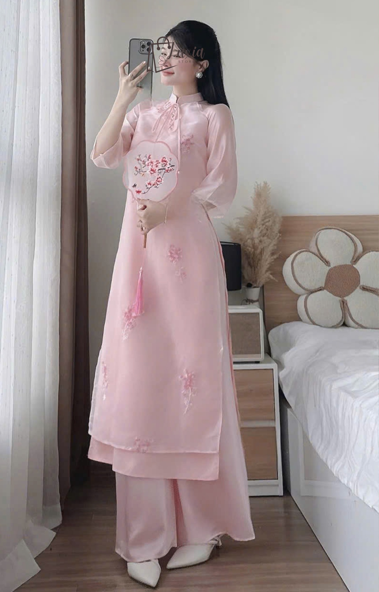 Set áo dài tơ thêu hoa – Nét duyên truyền thống pha chút hiện đại 💖