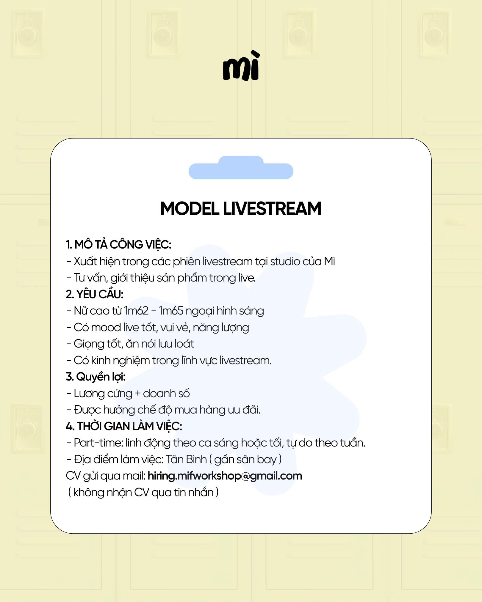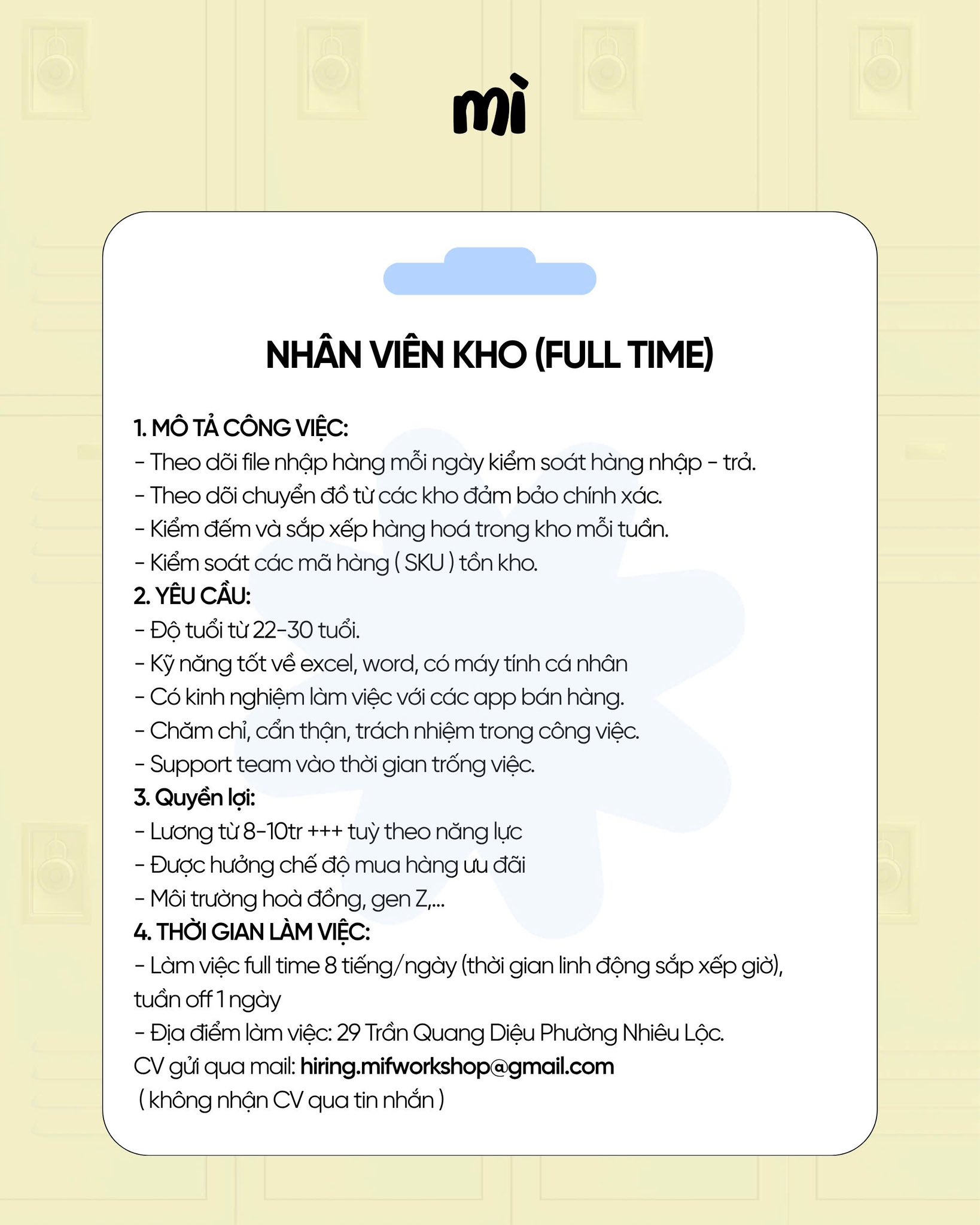 #𝐖𝐄 #𝐀𝐑𝐄 #𝐇𝐈𝐑𝐈𝐍𝐆Mì #đang #tuyển #dụng #các #vị #trí #sau #Nhân #viên #kho #full #time #Mẫu #livestream #Thiết #kế #thời #trang #chi #tiết #mô #tả #công #xem #ở #hình