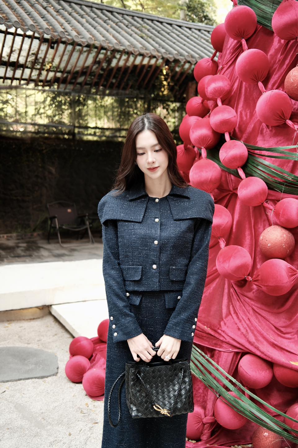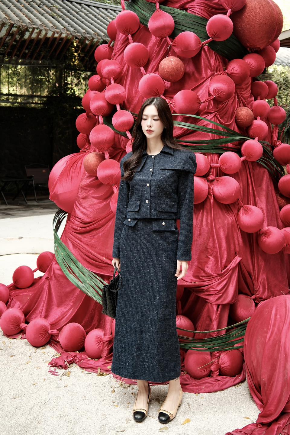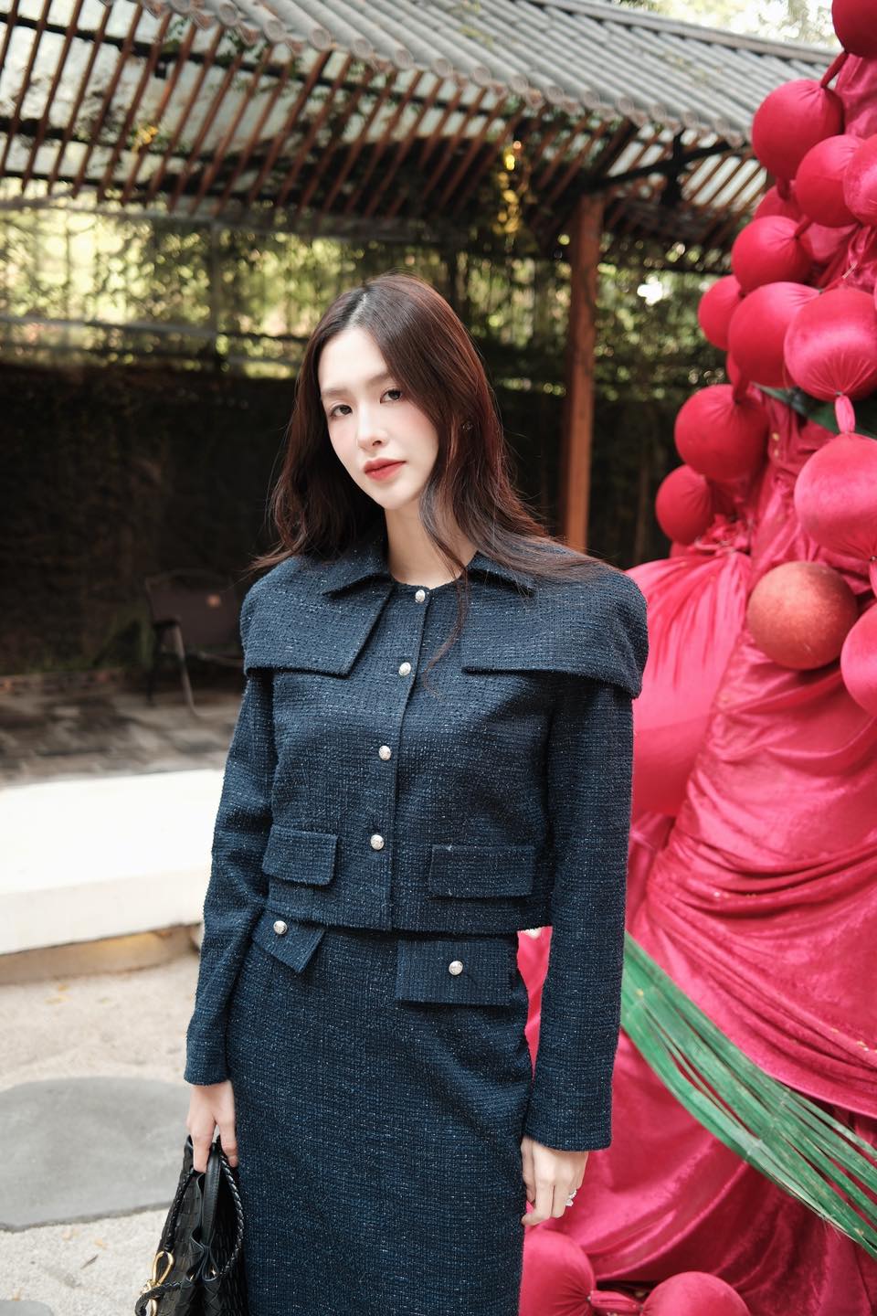![[๐๐ป๐ณ] Mushie Studio ๐ Top1Fashion ๐ Crafted in a deep navy tweed, this ensemble blends soft structure with effortless elegance.