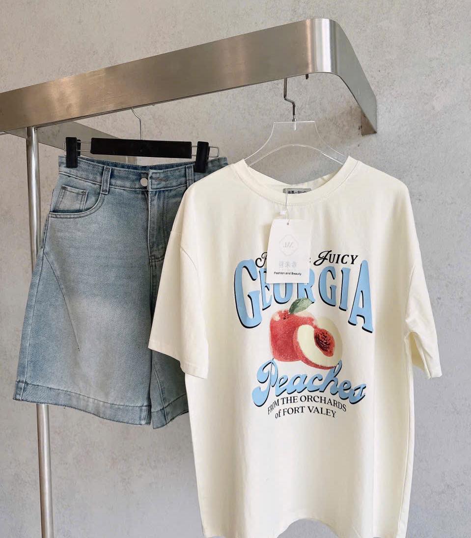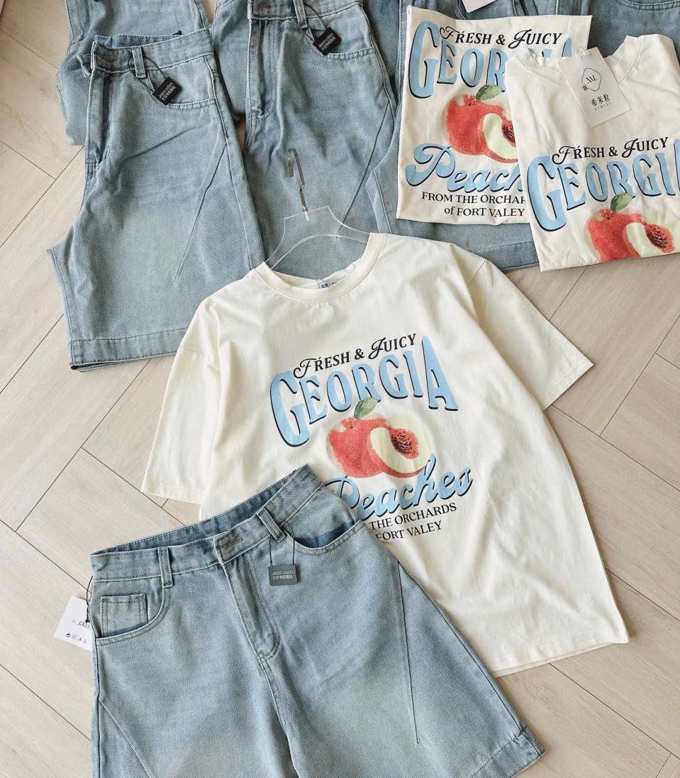 SET ÁO COTTON BE QUẢ ĐÀO GEORGIA PEACHES QUẦN JEANS ĐÙI LI CHÉO 1⃣6⃣9⃣