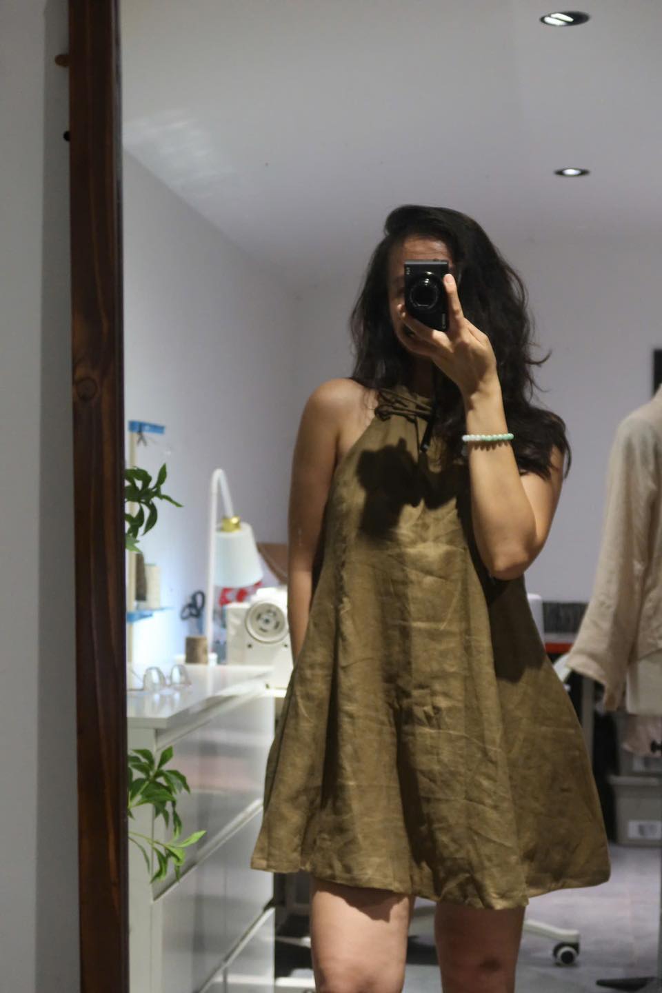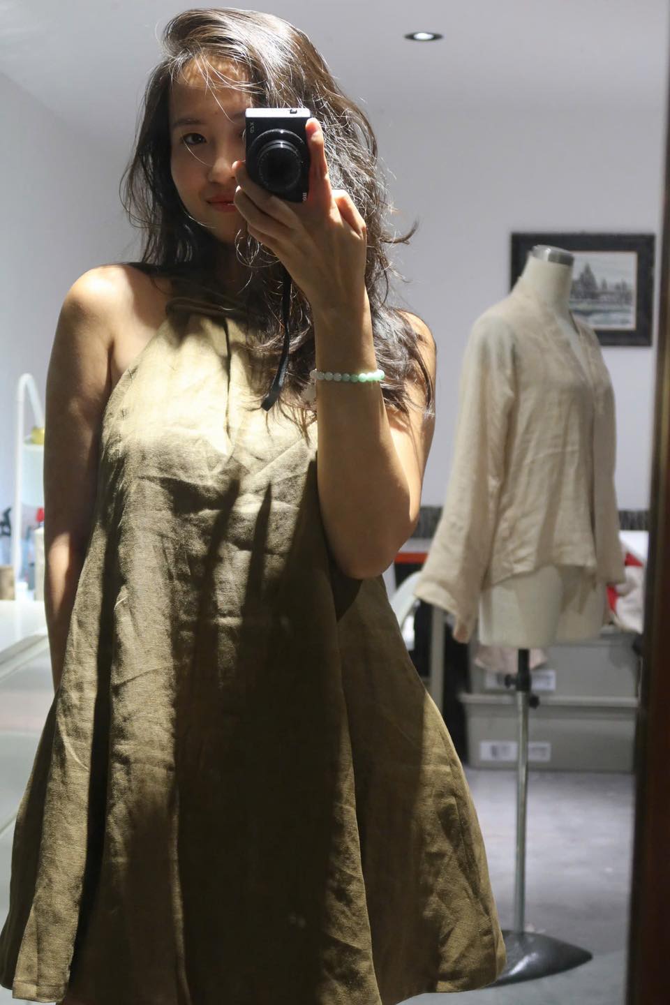 Nếu như màu nâu tây của linen mang lại sự trầm ấm thì thiết kế đầm ngắn chiết eo lại mang đến sự trẻ trung. Điều đặc biệt của sợi lanh là dưới các góc độ ánh sáng khác nhau, chúng sẽ toát ra vẻ đẹp riêng biệt.