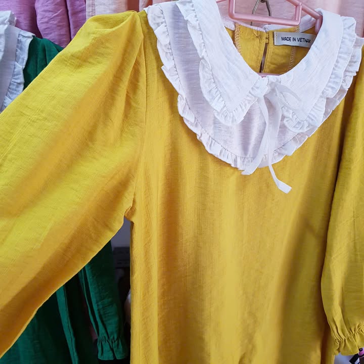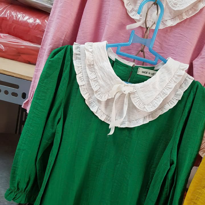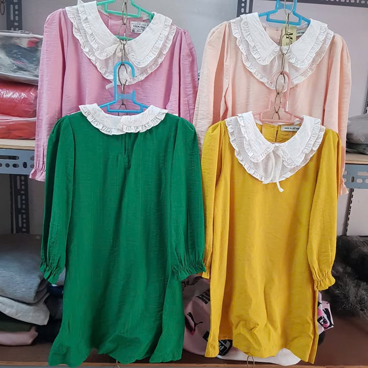 Áo váy cổ bèo chất đũi xước