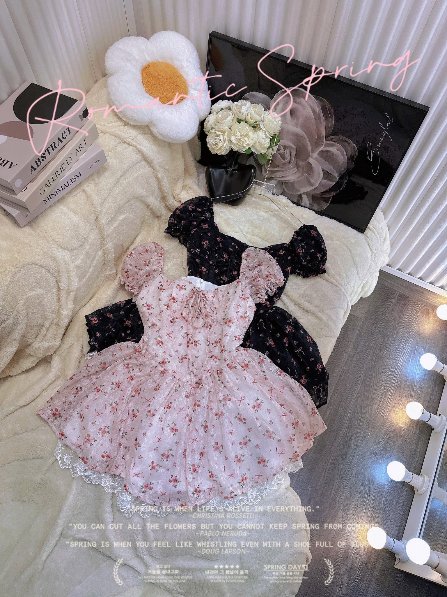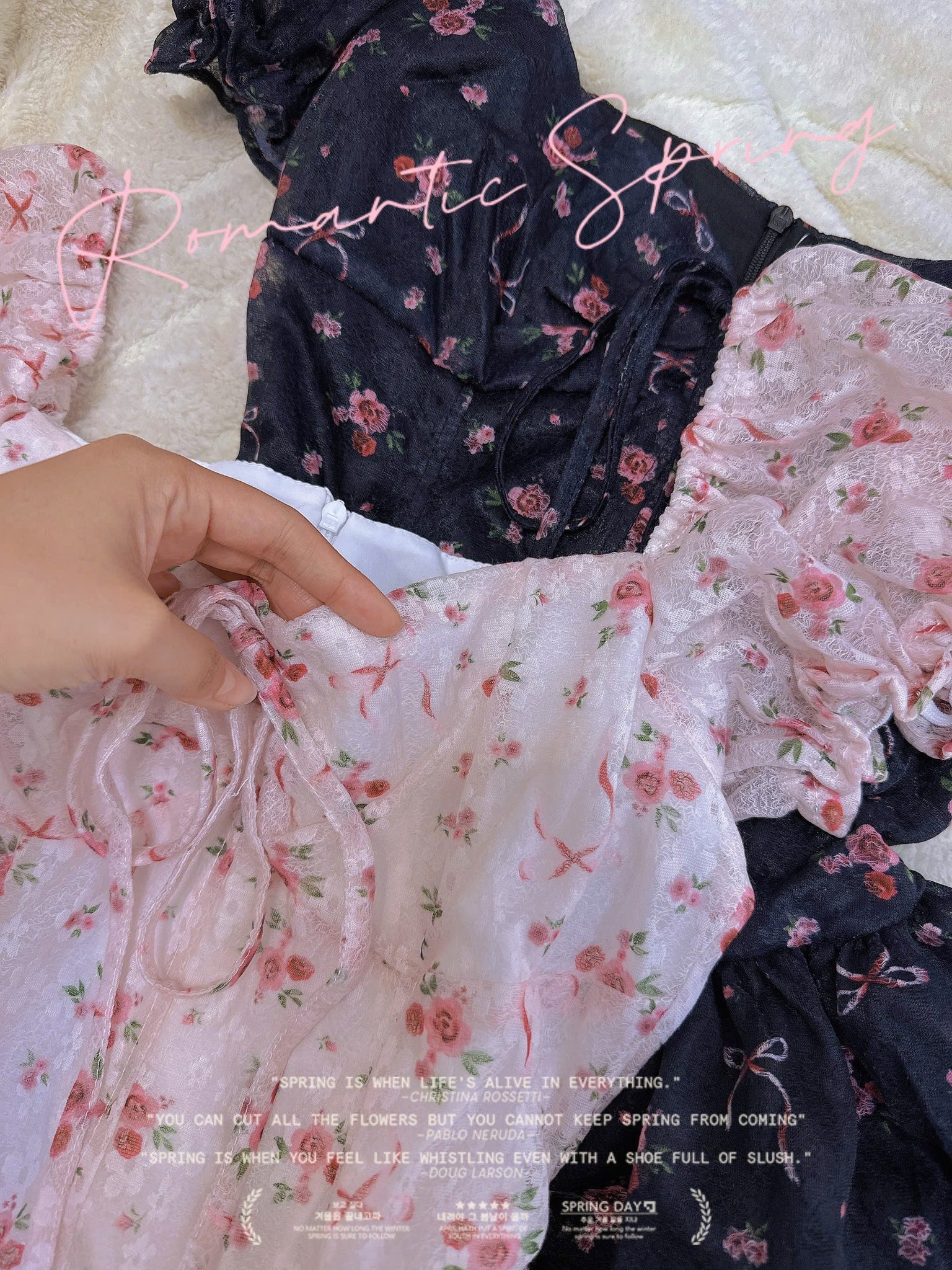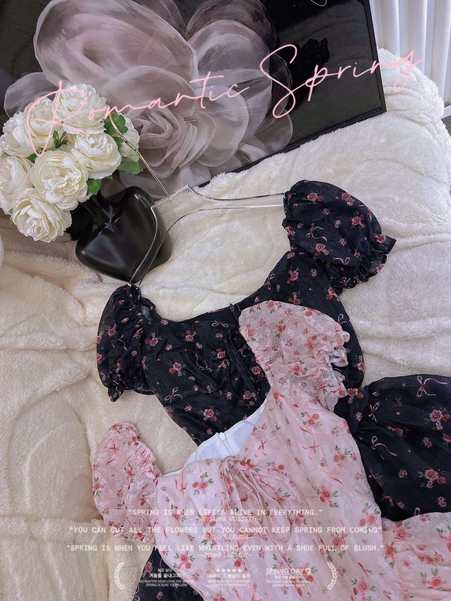 Hai màu: đen hoa nổi bật & hồng pastel ngọt ngào 🌷