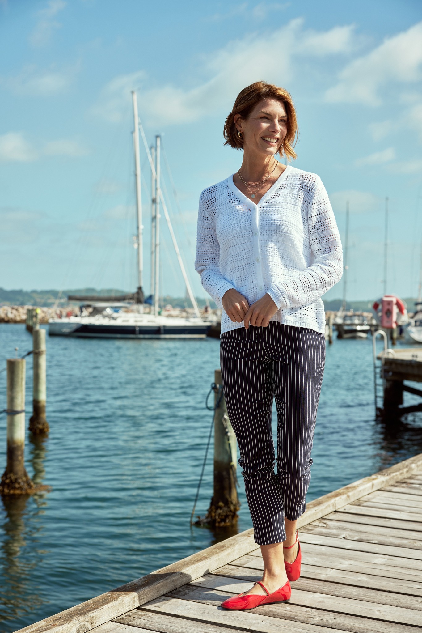Sunshine, sand, and stripes that pop.