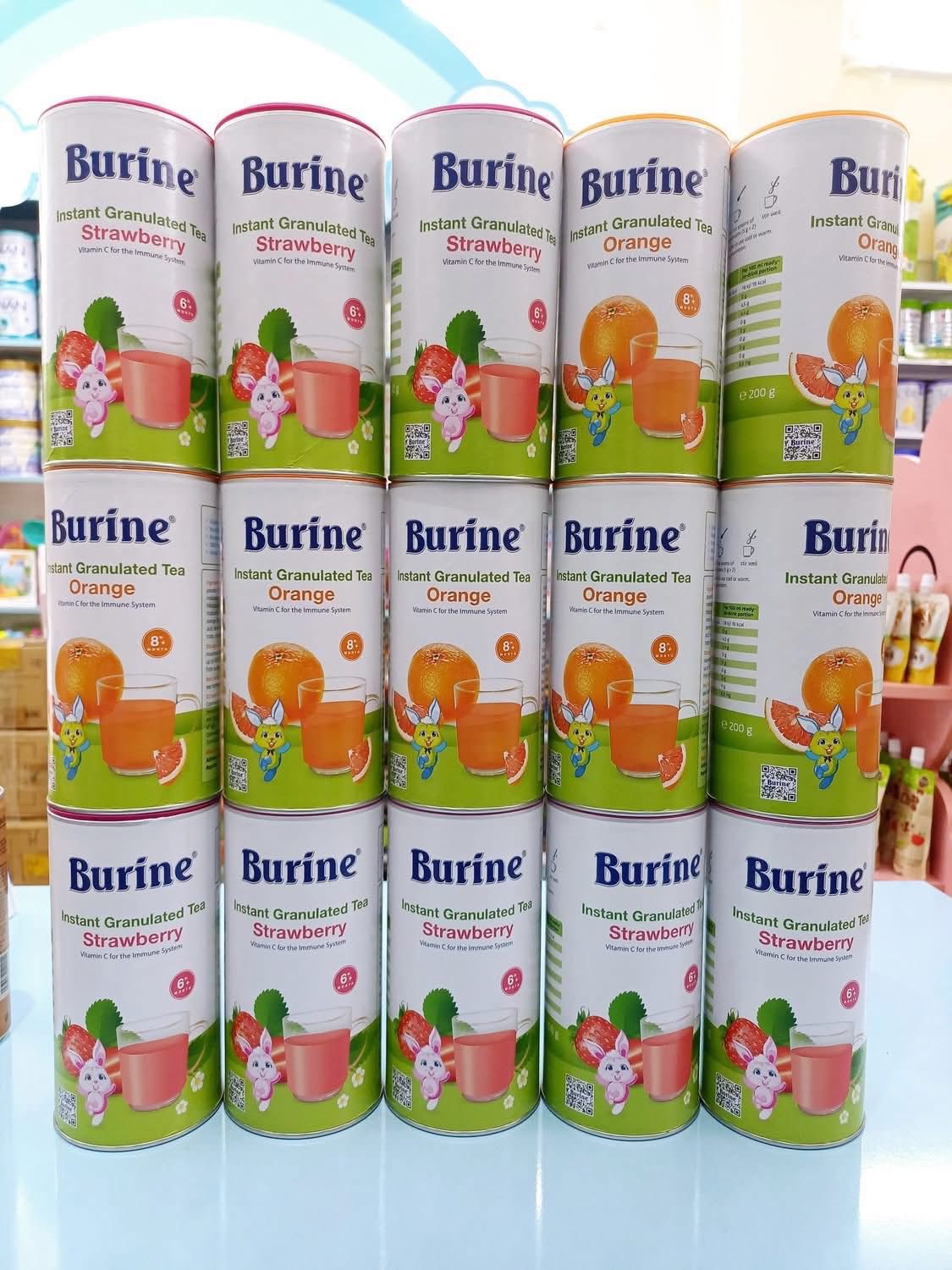 ![[🆕🇻🇳] Shop TOM BABY Chuyên Bỉm,Thời trang cho bé,các loại Bánh kẹo, Kem, Thực phâm dinh dưỡng 🧑🧒❤️️👶⭐️ TRÀ HOA QUẢ BURINE ( sẵn vị dâu và cam)