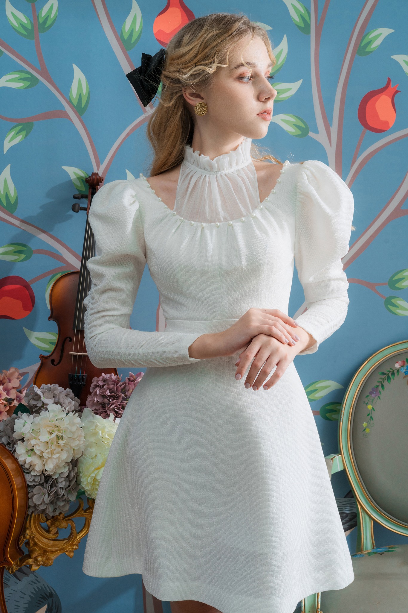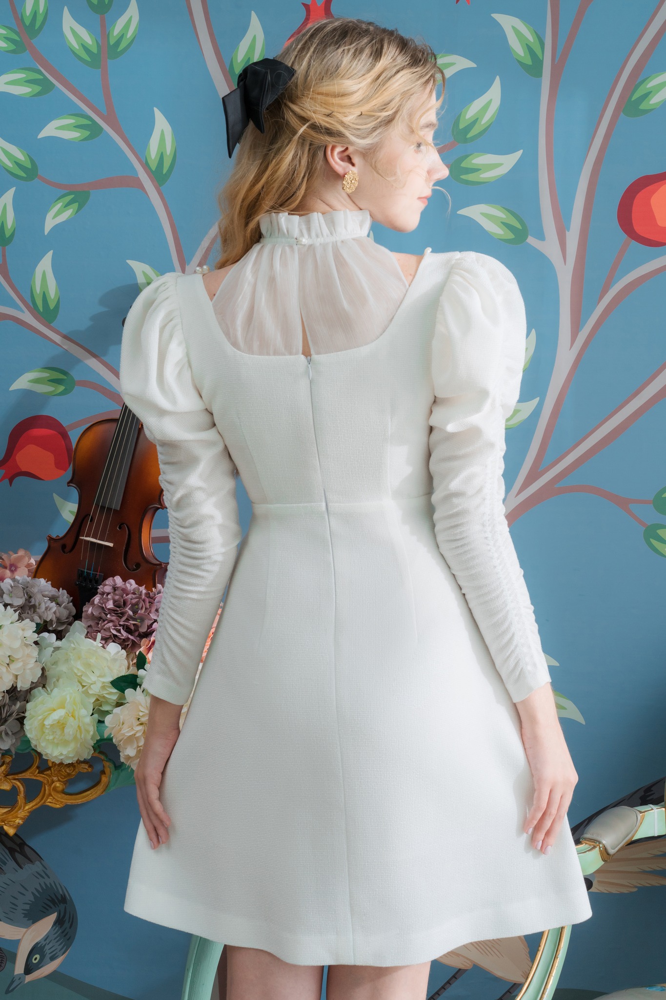 Petite Dahlia như mọt bản giao hưởng tuyệt đẹp của bông tuyết trắng mùa đông với chút điệu đà, e ấp của ngày đầu năm – một lựa chọn lí tưởng đồng hành cùng nàng trong những chuyến du xuân 2022. Phần cổ thiết kế tinh tế và sáng tạo vừa tạo được nét đẹp thanh lịch, kín đáo vừa khéo léo khoe ra phần xương quai xanh cuốn hút của nàng.