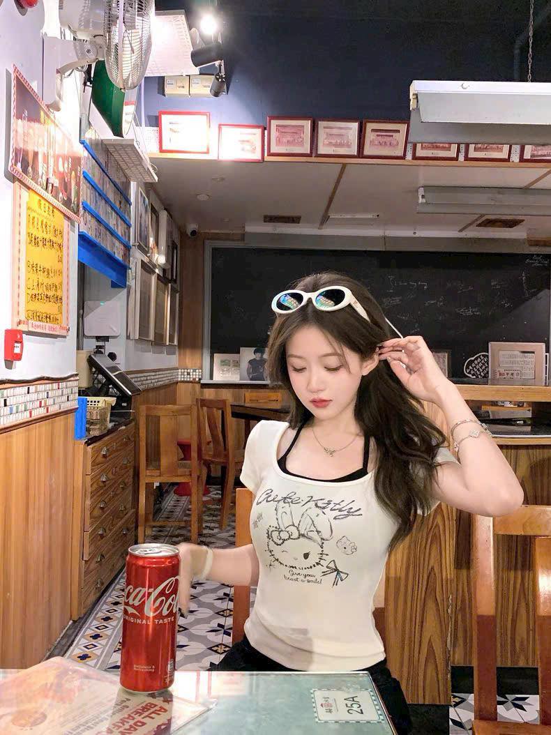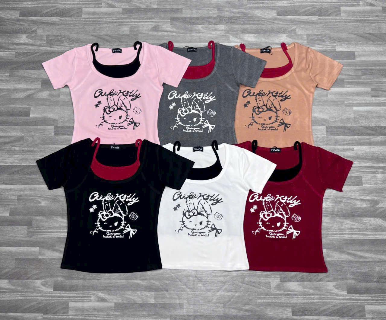 ![[🆕🇻🇳] Xưởng Áo Thun Nữ chuyên sản xuất và phân phối áo thun đủ mẫu vải loại 1 sll 👕 Top1Fashion 👗 HOT TREND 2025 – Áo Thun Borip Layer Cute KittyThiết kế 2 trong 1 độc đáo: áo thun ôm body mix cùng áo 2 dây, vừa cá tính vừa dễ thương.