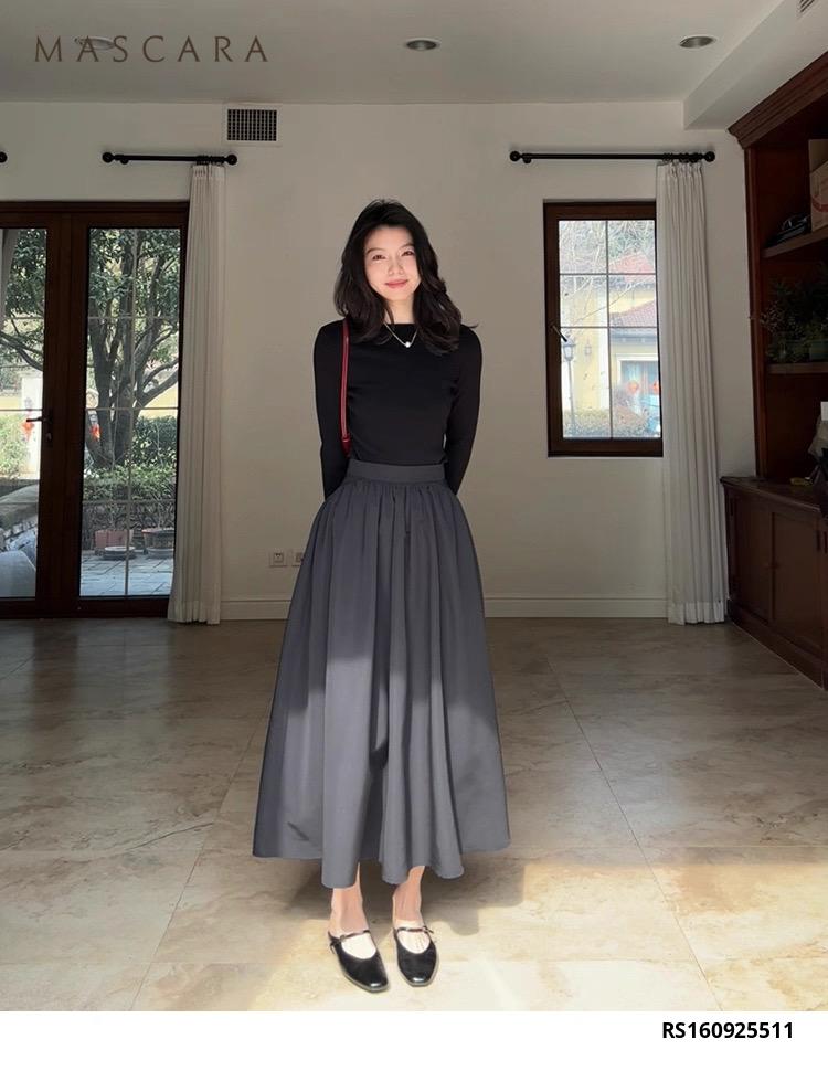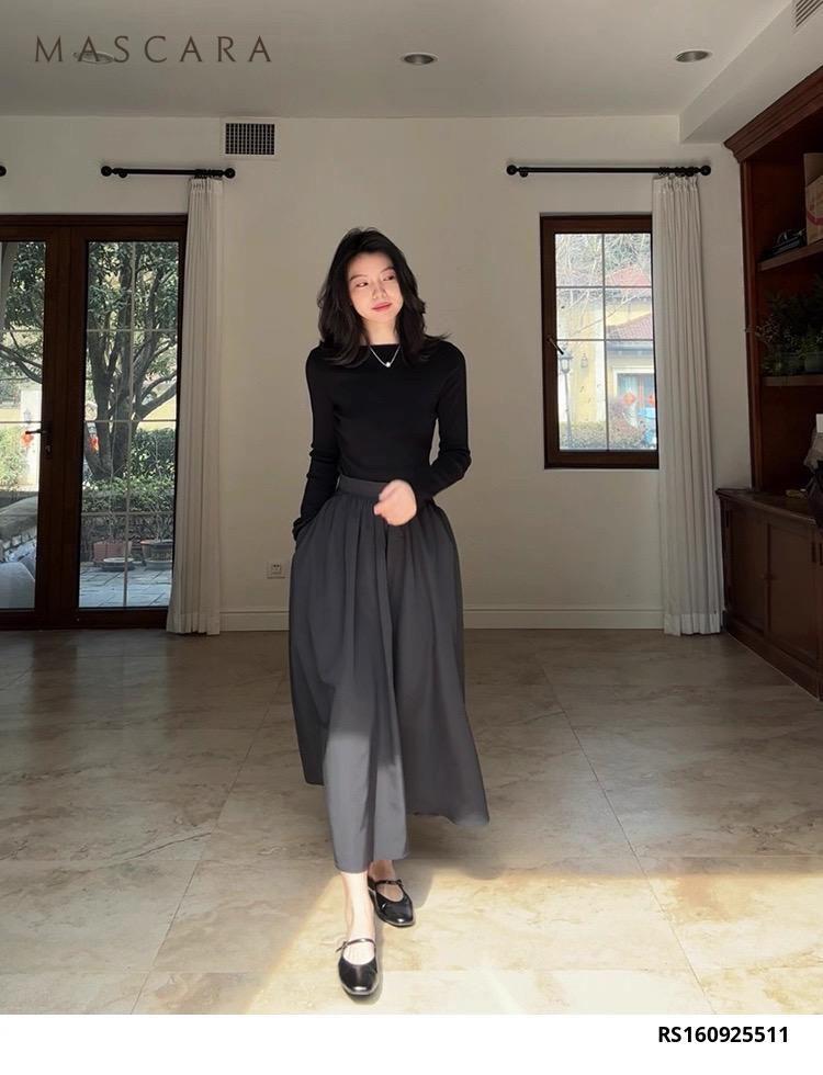 Áo len cổ thuyền dáng ôm, chất liệu co giãn ôm vừa vặn tôn dáng. Kết hợp chân váy tùng nhún xòe, tạo tổng thể dịu dàng nhưng vẫn hiện đại – Chalee Set hoàn hảo cho những ngày se lạnh.