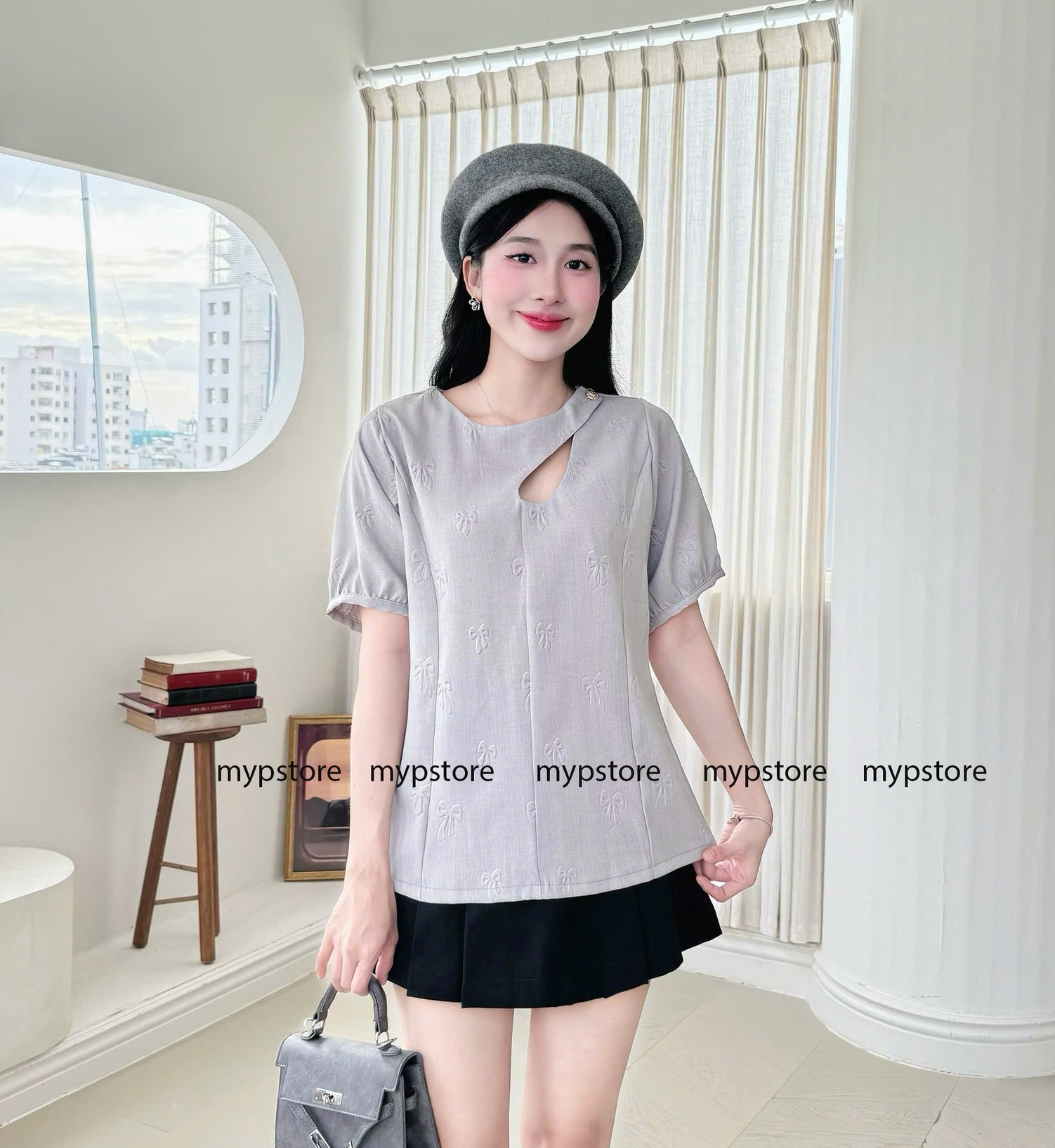 #Áo #cổ #tròn #cắt #xẻ #cài #nút #tay #ngắn #phông #nơ #nổi #Mypstore #Màu #trắng #kem #Xám #đỏ #đô #Giá #áo #145K #SML #Giá #váy #145K #SMLXL #Đen #quần #váy
