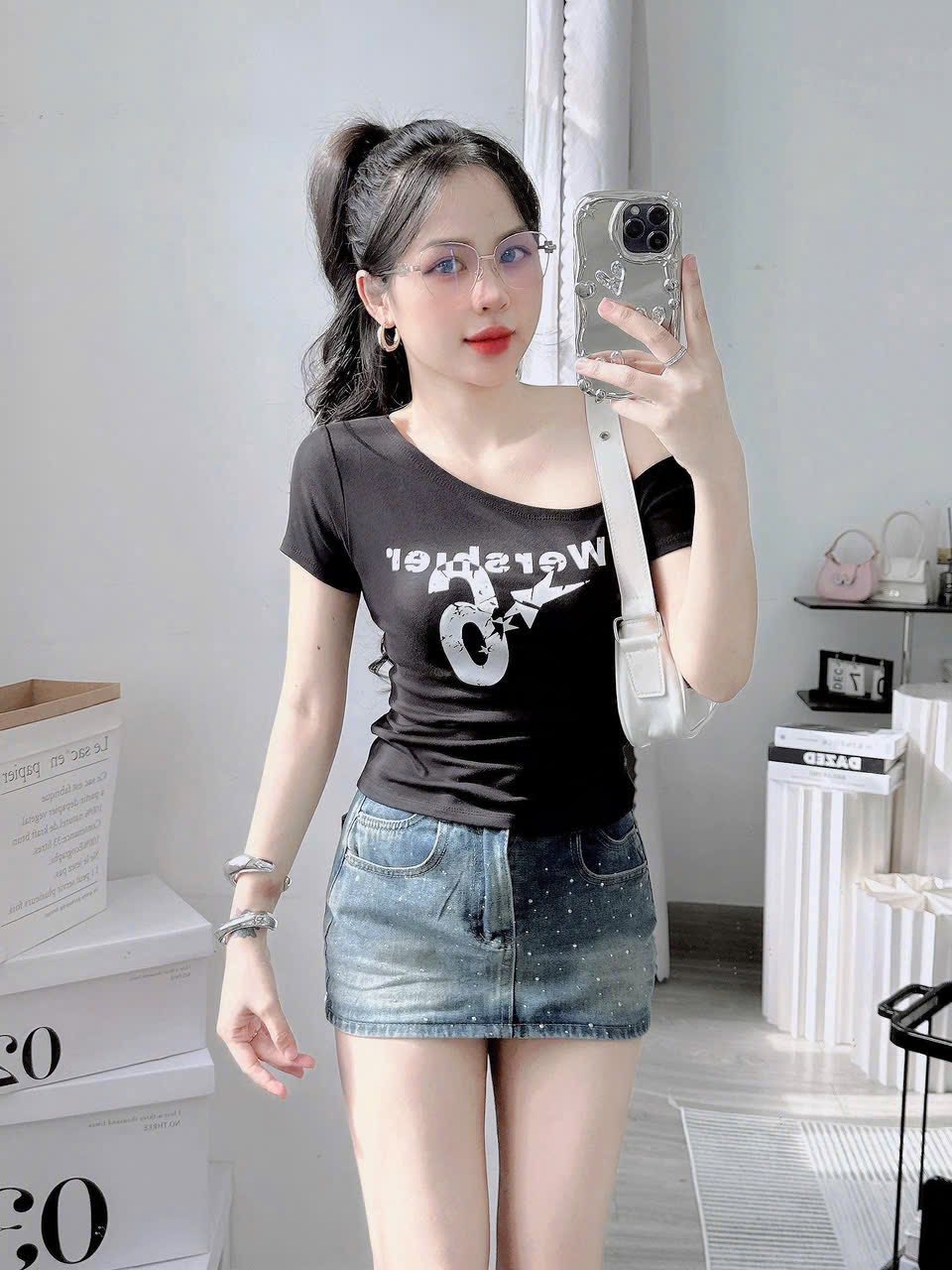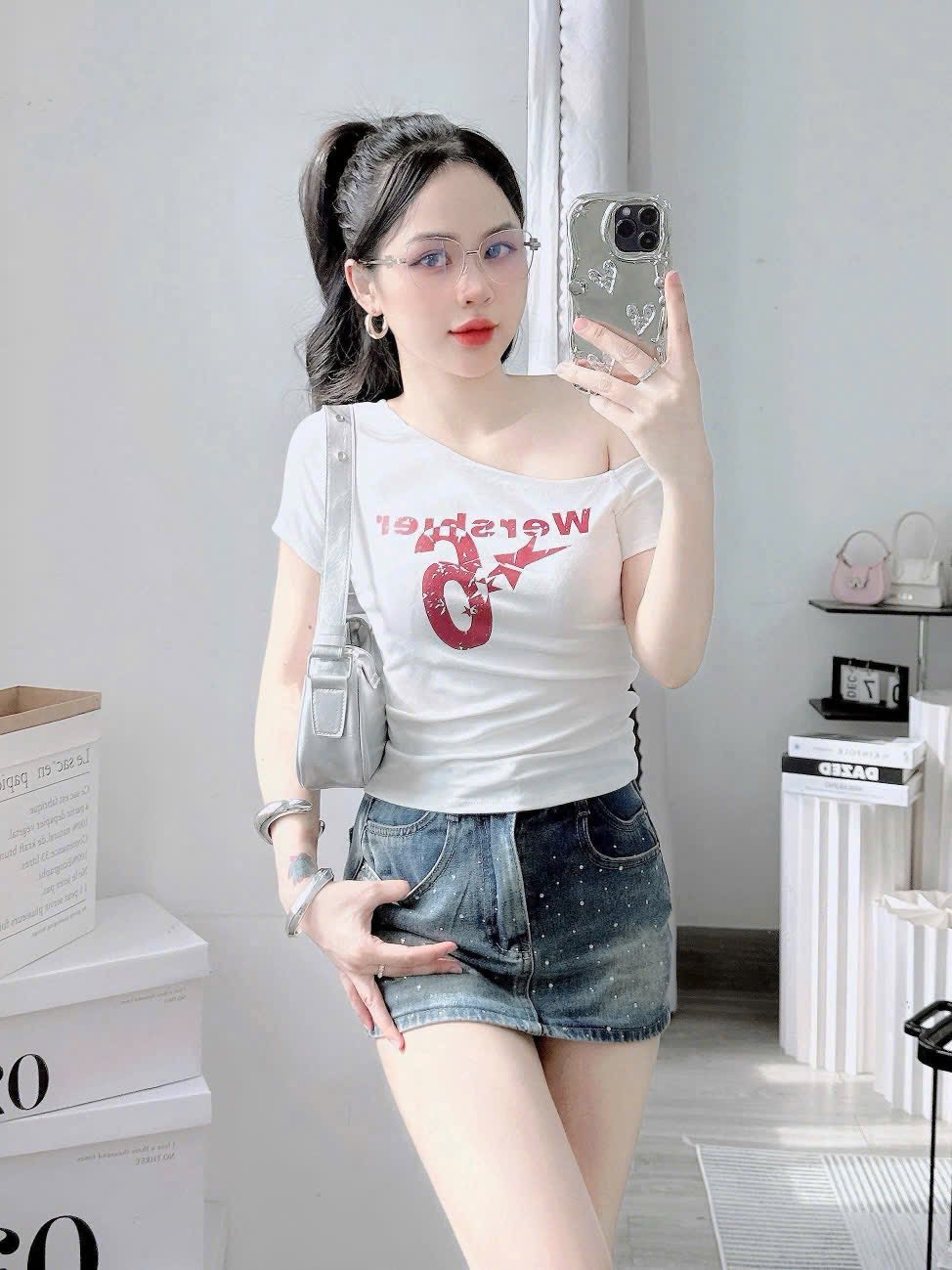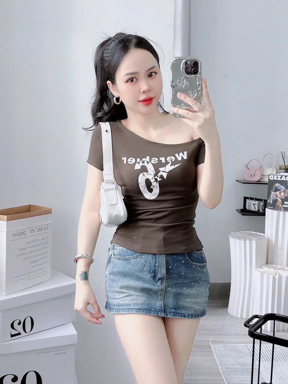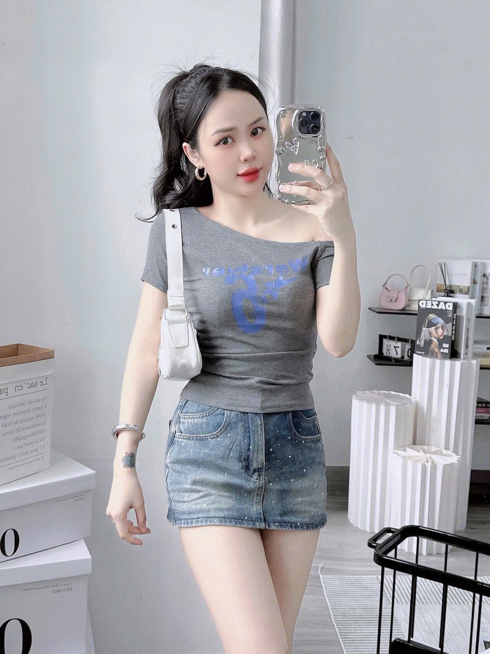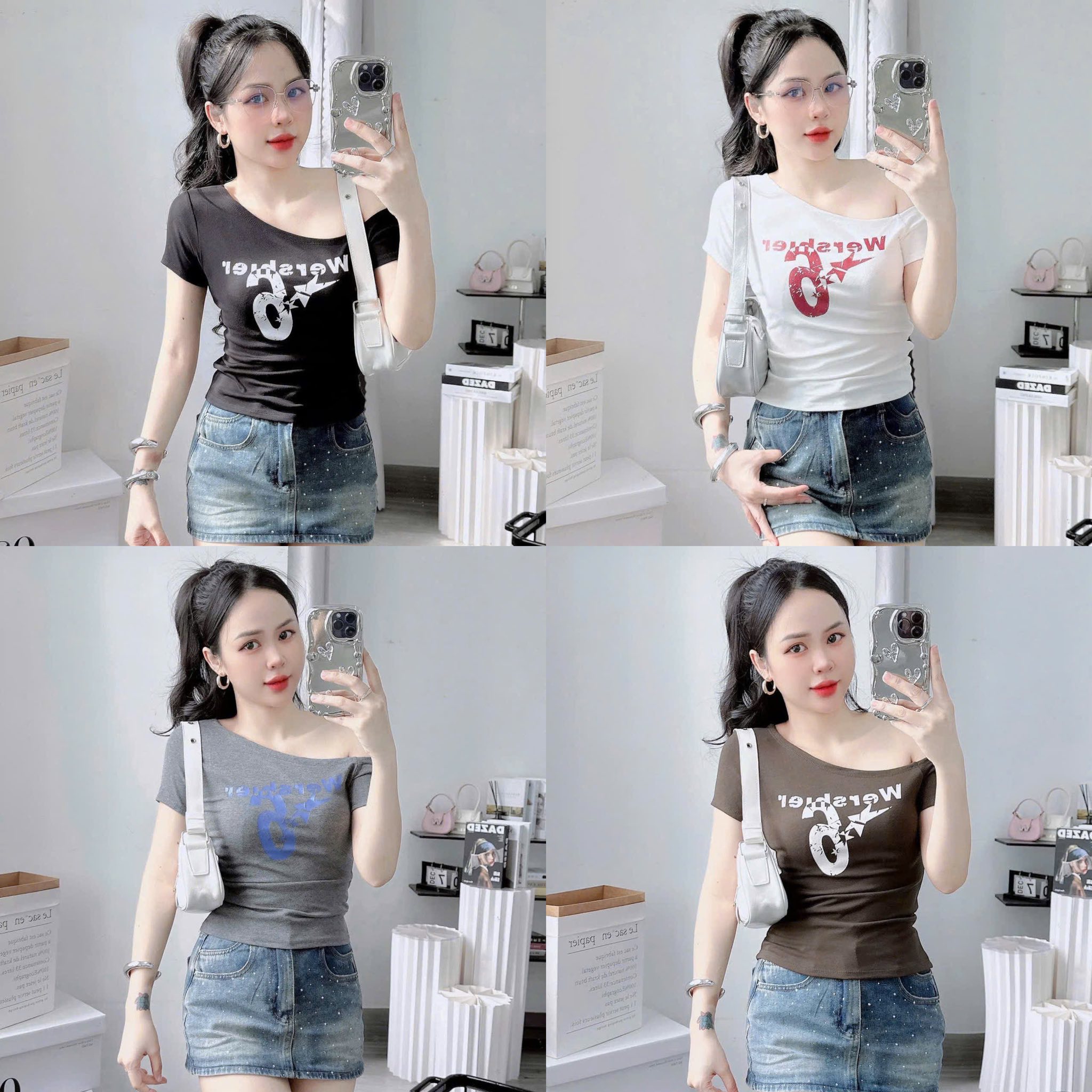 #Lệch #vai #tay #ngắn #chất #bozip #lạnh #giãn #túi #zip #freesize #dưới #55kg