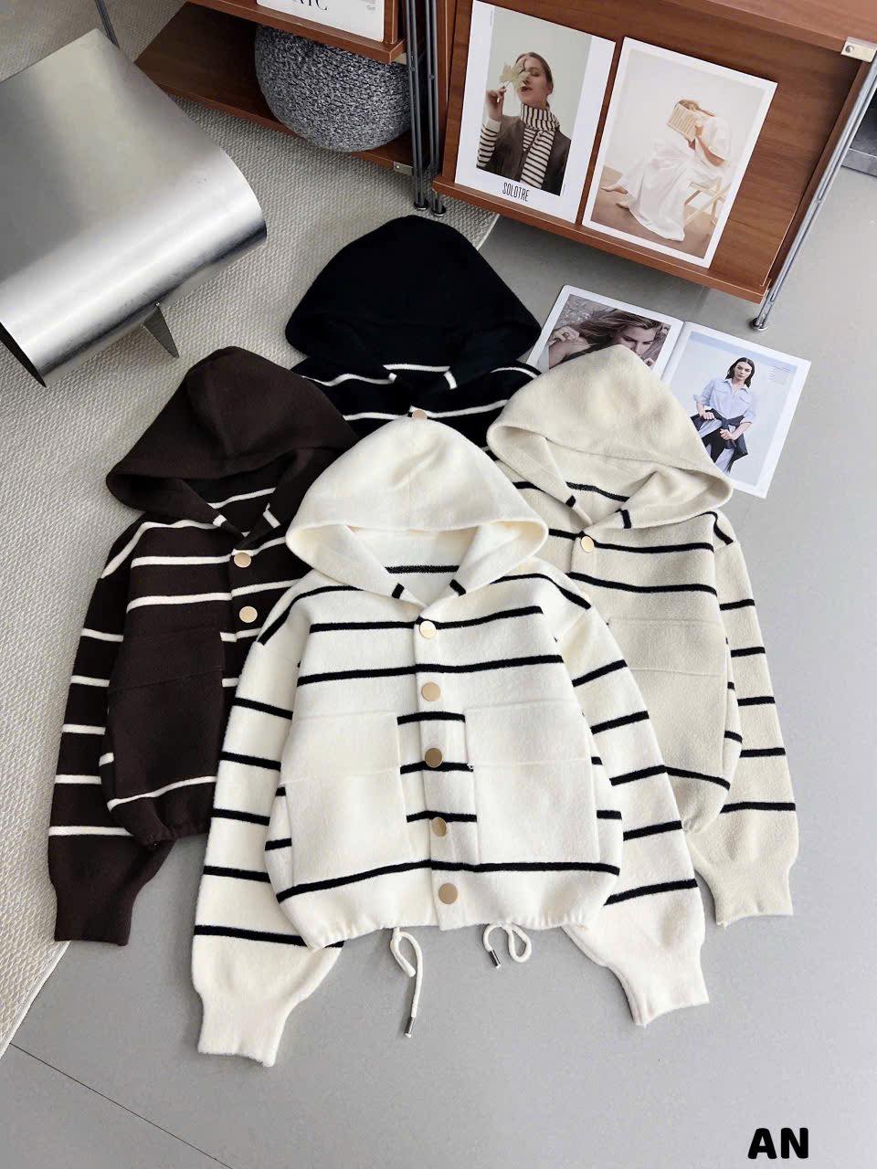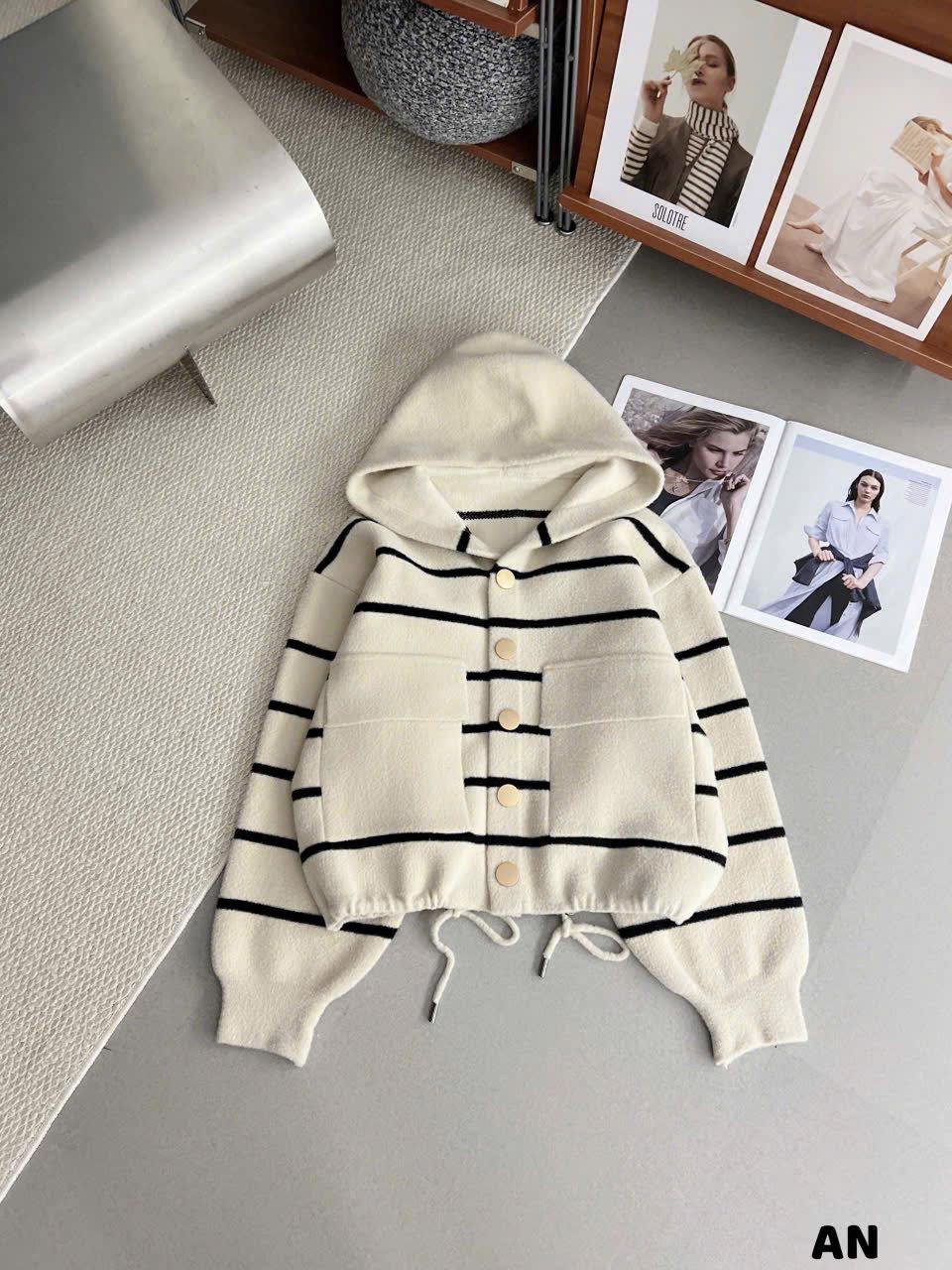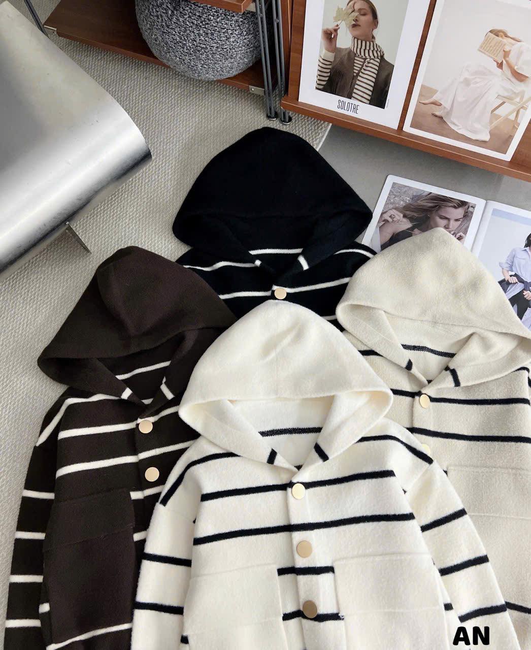 Áo len ép mũ kẻ ngang túi vuông ! Năm nay công nhận len ép đẹp quá các chị ạ ! Bảng màu đỉnh nha ! #2607