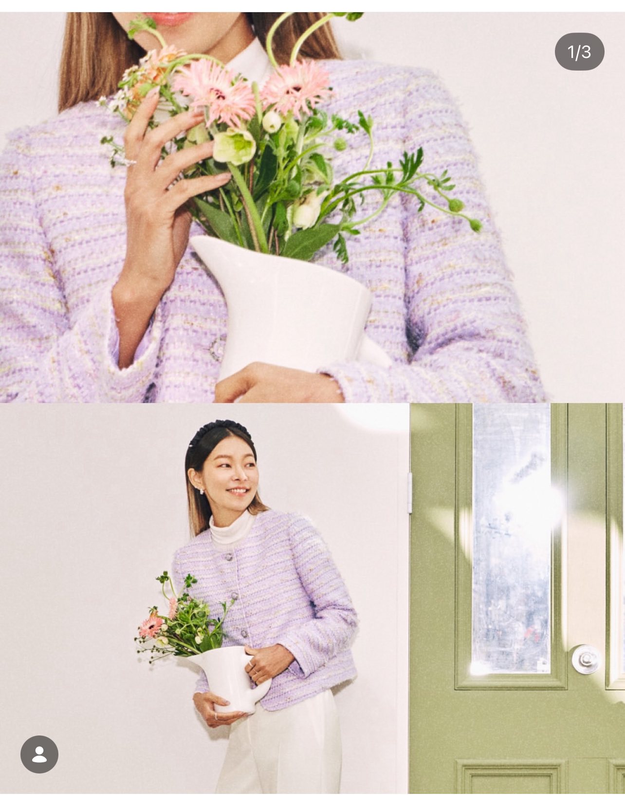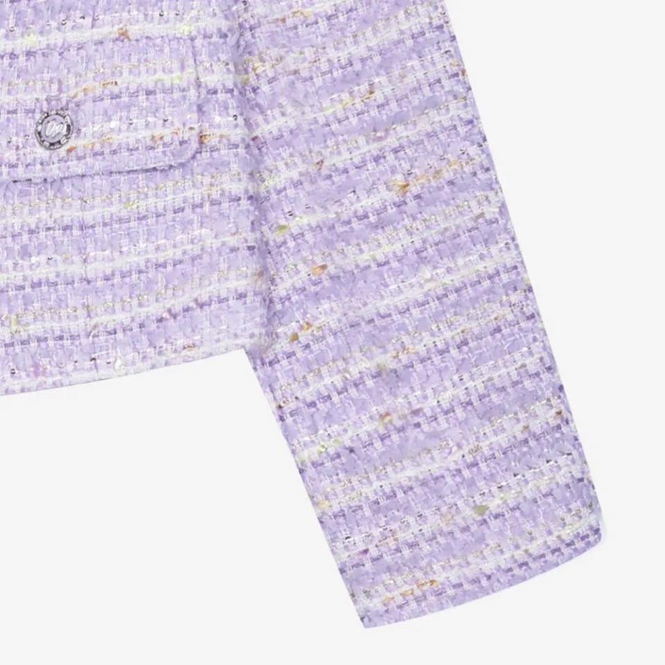 Và sắc tím pastel pha sợi màu nhẹ của mẫu tweed này chính là kiểu “dịu kha” rất dễ yêu 💜