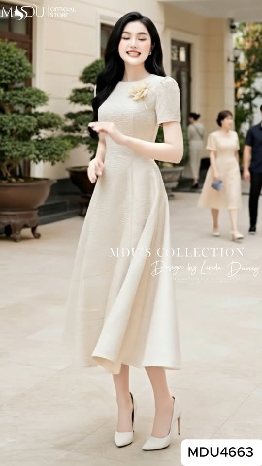 #Thiết #kế #gấm #vân #nổi #sang #trọng #gam #màu #kem #thanh #lịch #Dáng #xòe #nhẹ #tôn #tay #bồng #duyên #dáng #che #khuyết #điểm #khéo #Hoa #cài #ngực #tinh #tế #có #thể #tháo