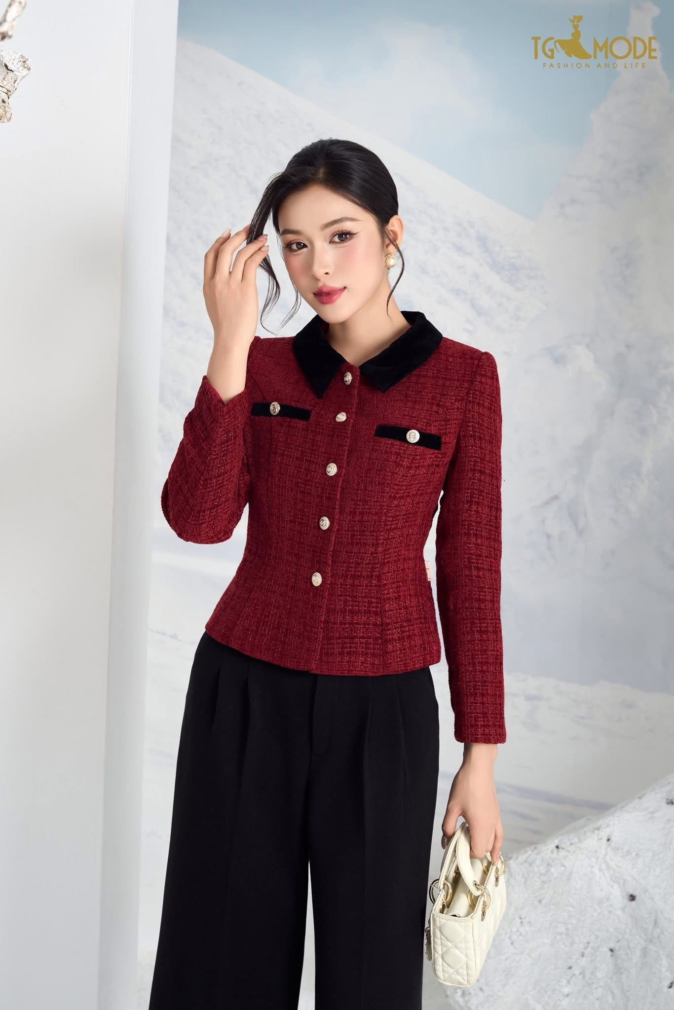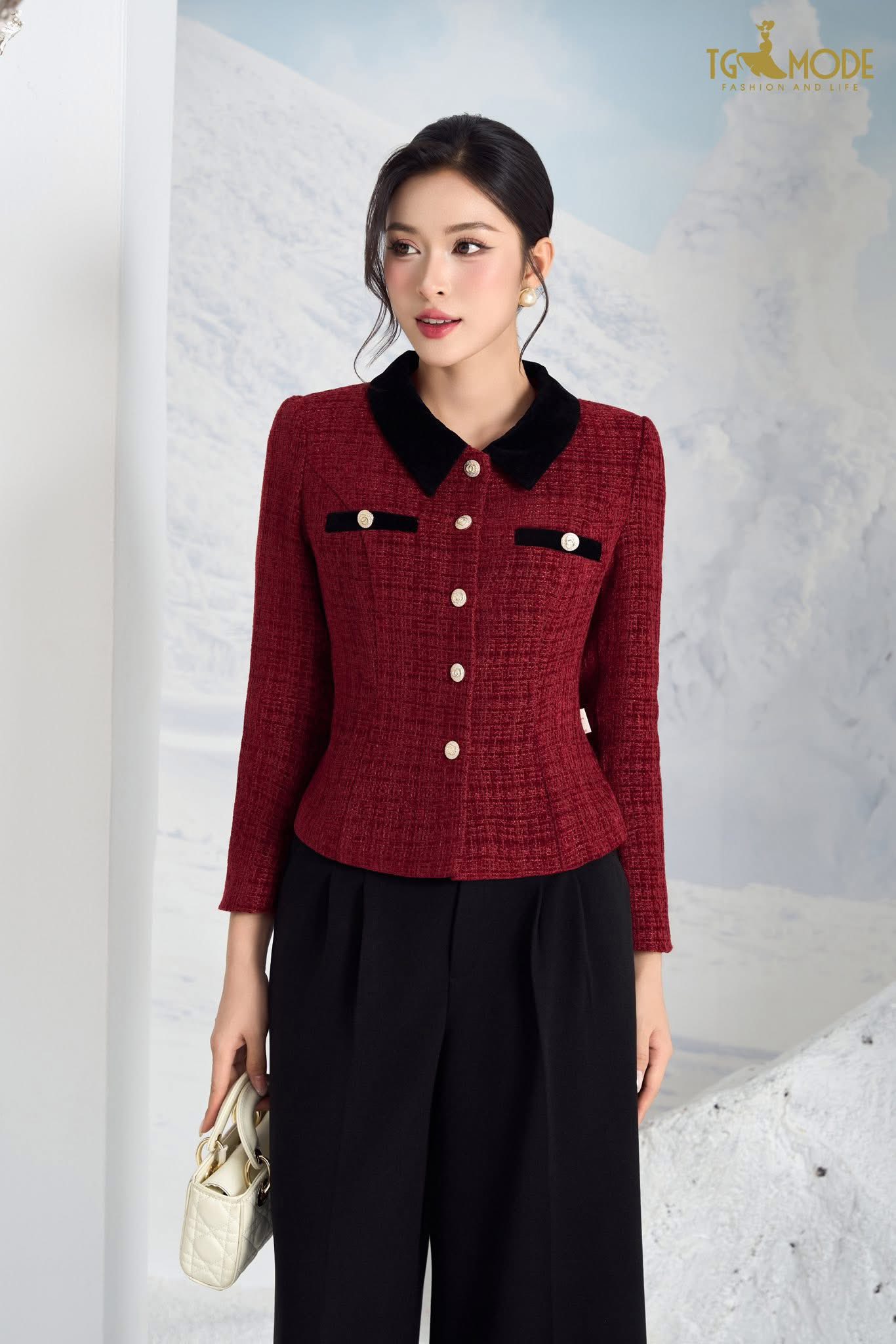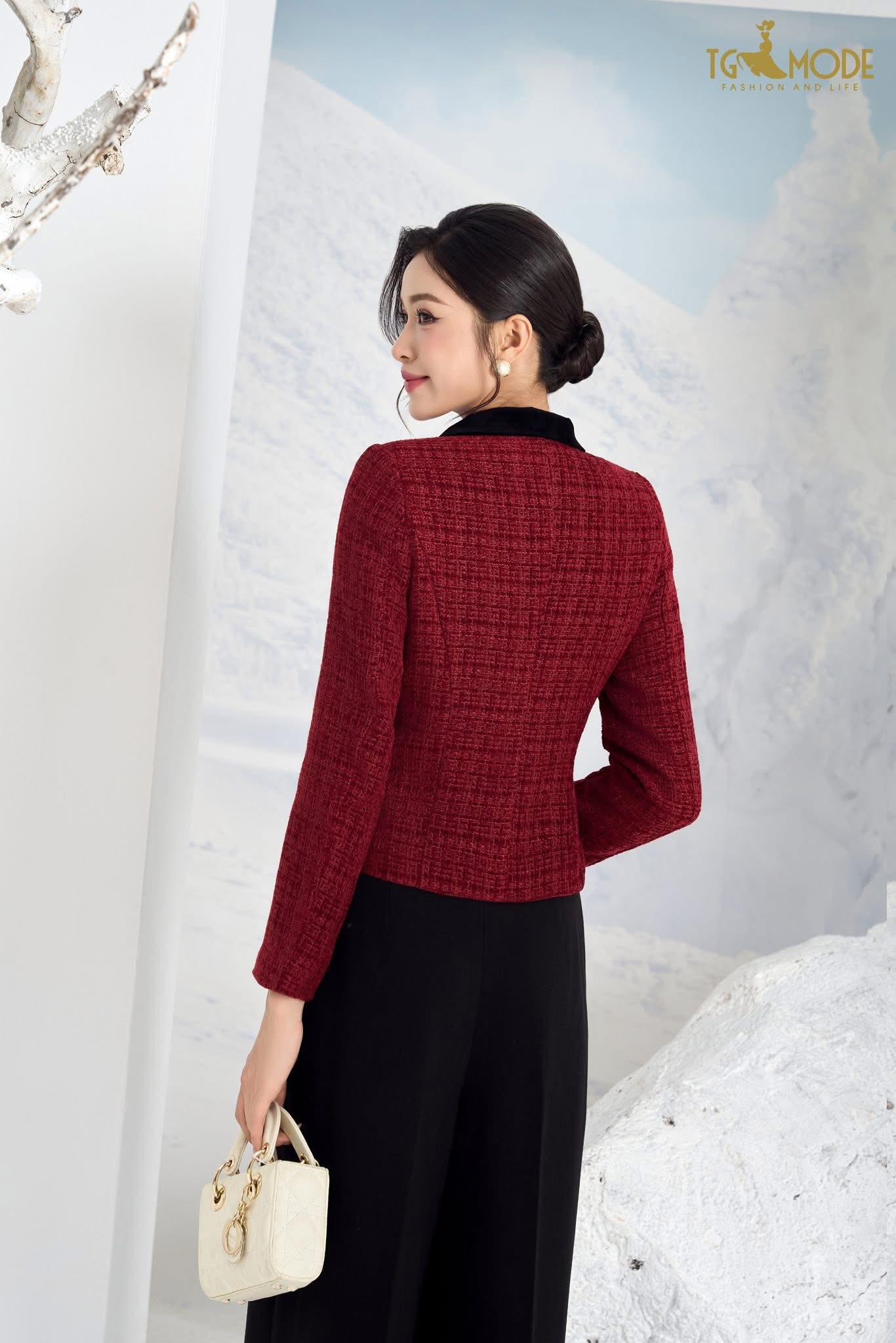 Thiết kế tweed dày vừa phải, khuy ngọc trai ánh nhẹ giúp nàng giữ được nét thanh lịch và sang trọng trong từng chuyển động.