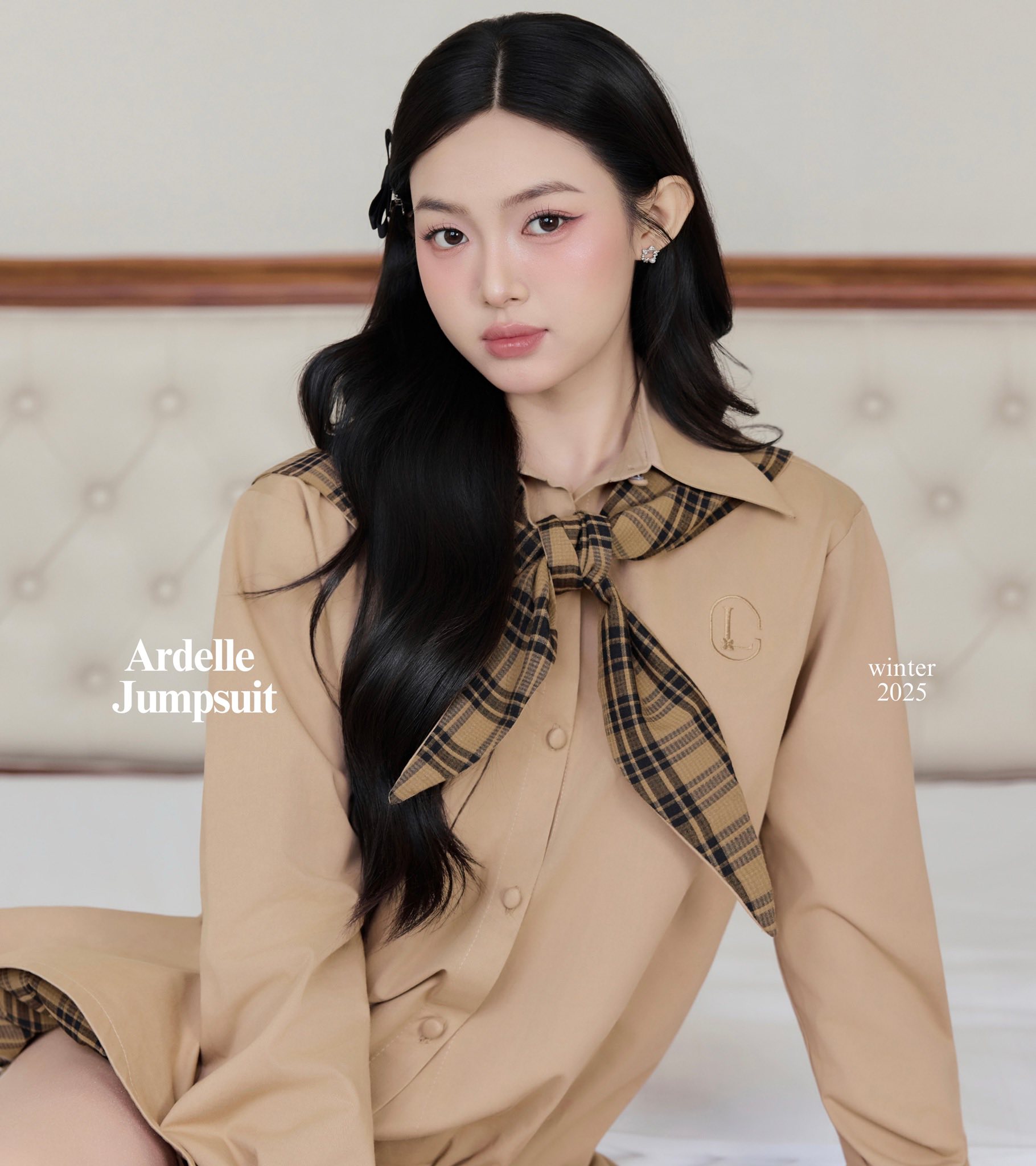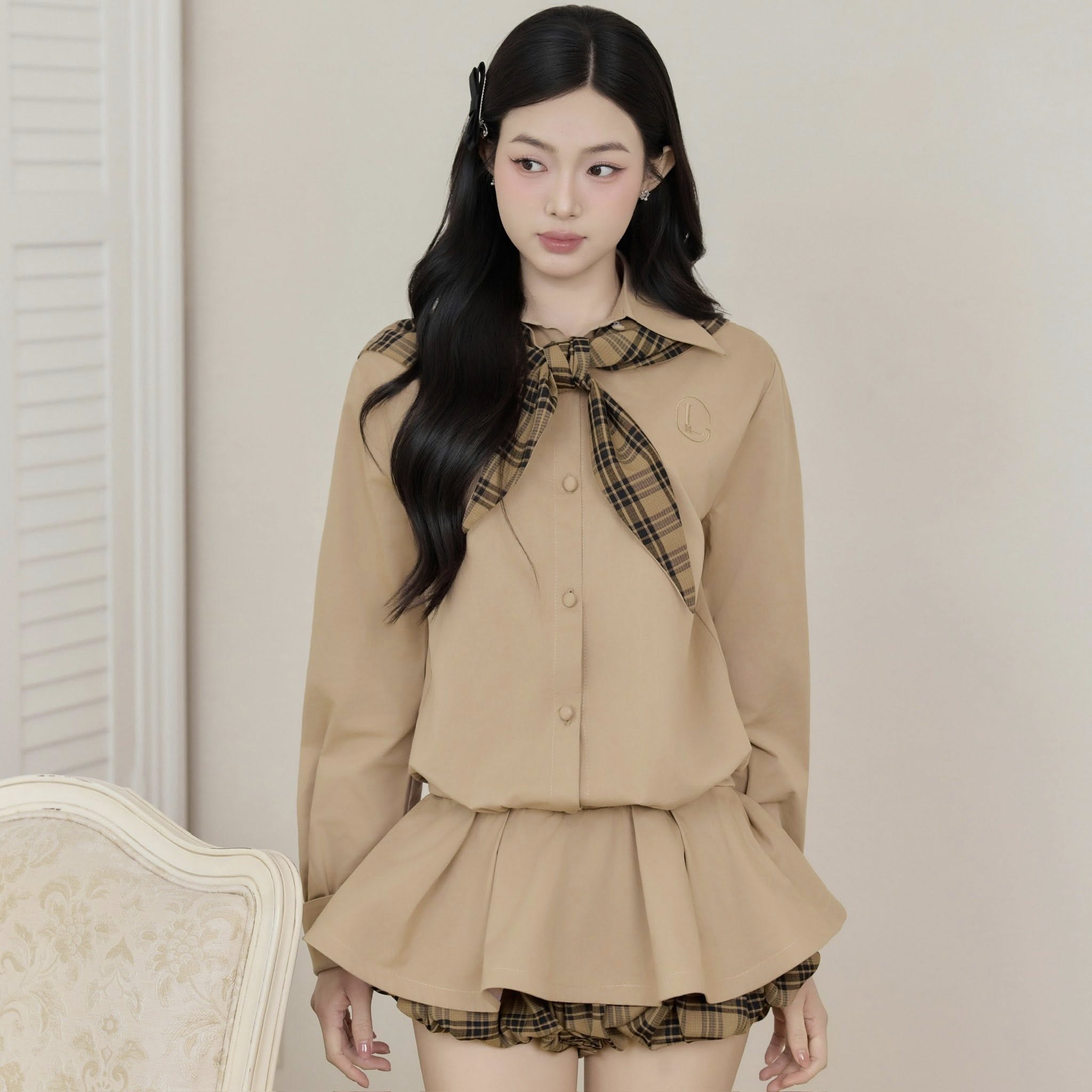 Thiแบฟt kแบฟ ฤiแปm nhแบฅn vแปi chi tiแบฟt nฦก cแป vร ฤฦฐแปng viแปn caro tinh tแบฟ, kแบฟt hแปฃp cรนng gam mร u nรขu trแบงm แบฅm giรบp tแปng thแป trแป nรชn hร i hรฒa vร thanh lแปch. Phแบงn jumpsuit ฤฦฐแปฃc xแปญ lรฝ khรฉo lรฉo, mang lแบกi sแปฑ kรญn ฤรกo nhฦฐng vแบซn giแปฏ ฤฦฐแปฃc nรฉt trแบป trung, hiแปn ฤแบกi.