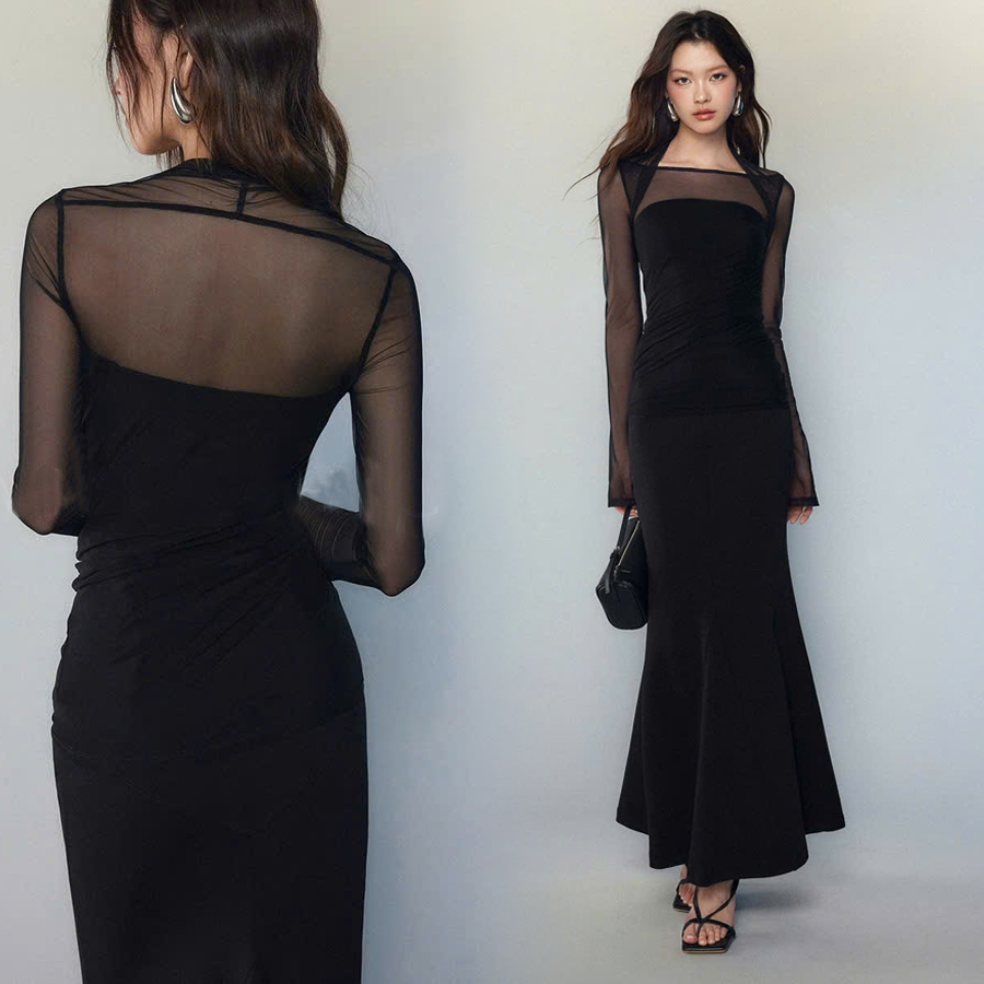 Gam đen huyền bí ôm trọn đường cong mềm mại, tạo nên vẻ sang trọng mà bất cứ ánh nhìn nào cũng phải dừng lại.