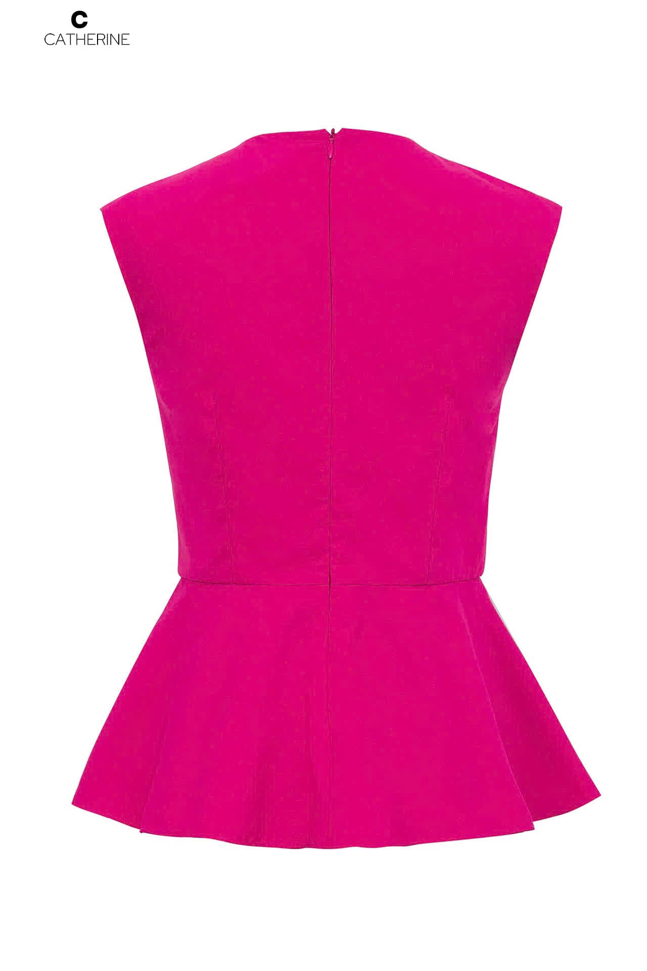 Chiếc áo peplum hồng fuchsia thanh lịch, nữ tính. Nhấn tinh tế, ôm nhẹ vòng eo, tôn dáng thon gọn.