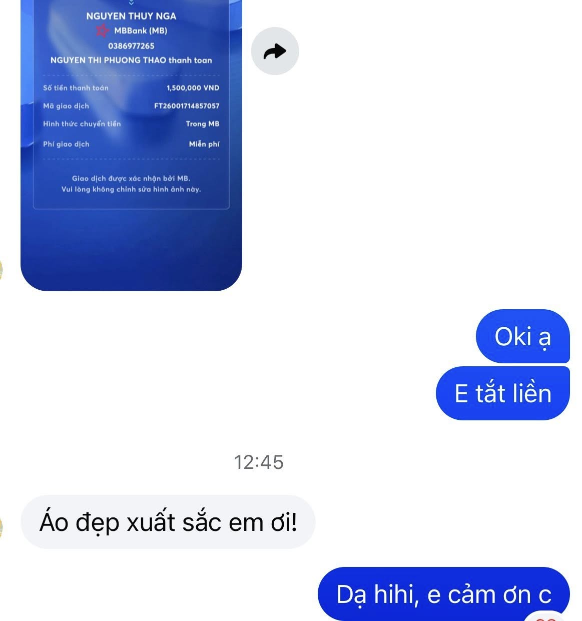 Không ít khach sẵn sàng chuyển khoản trước full đơn ngay lần mua đầu tiên, giá trị đơn nhiều/ít Ad ko bàn tới, cái trân quý ở đây là sự tin tưởng của KH dành cho Tiệm .