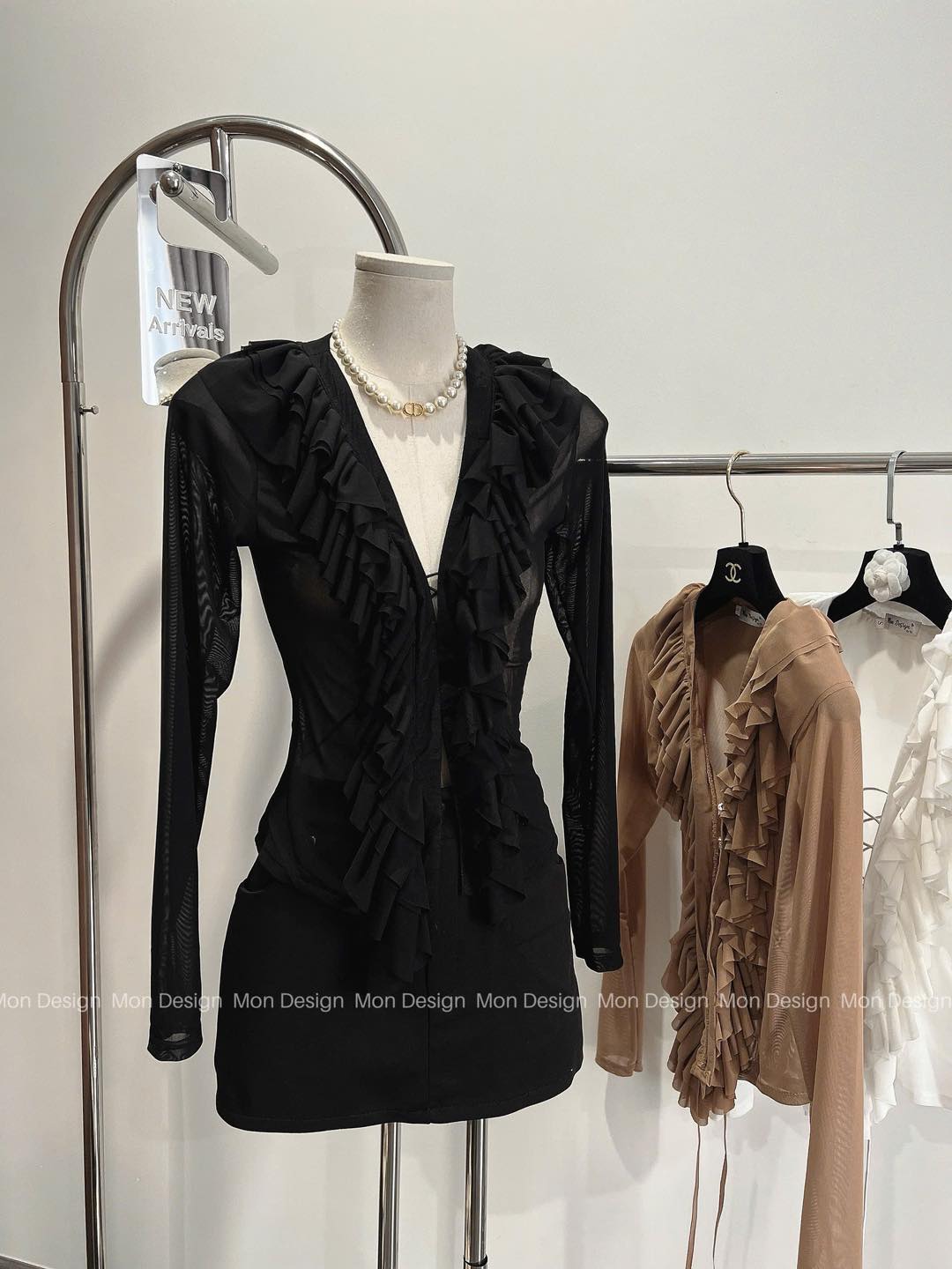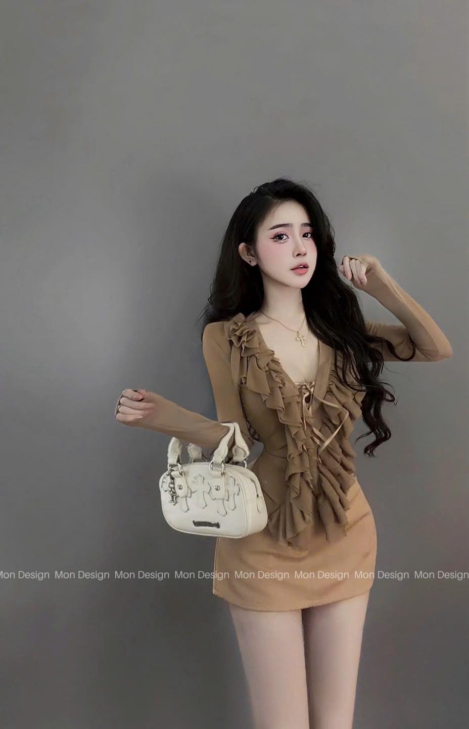 #Set #áo #lưới #chân #váy #Màu #đen #trắng #nâu #Size