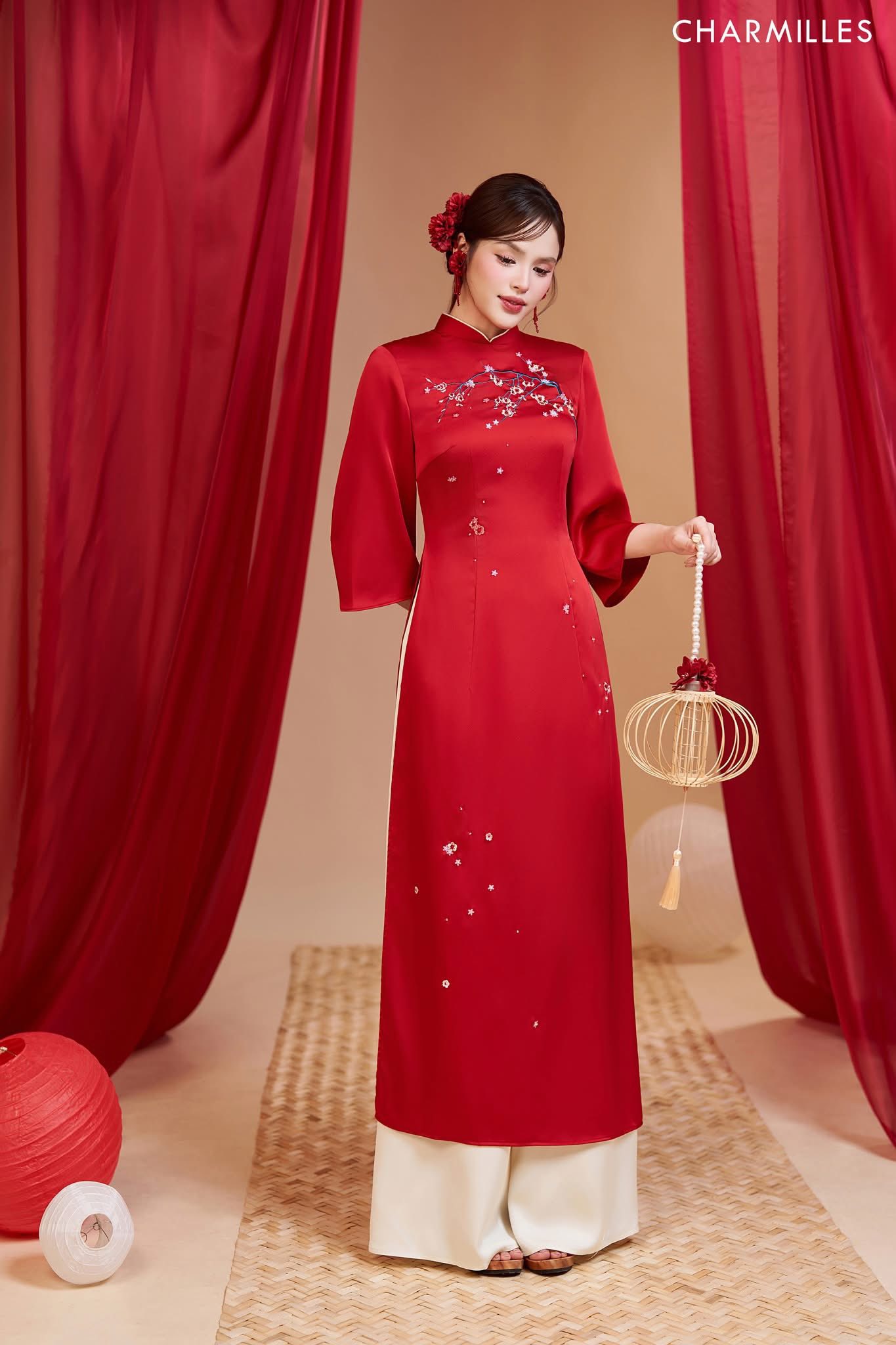 #Lấy #cảm #hứng #từ #dáng #áo #dài #xưa #Áo #dài #Đào #Son #là #bản #hòa #giữa #tinh #thần #truyền #thống #và #hơi #thở #mới #đầy #tự #Trên #nền #thước #lụa #cao #cấp #sắc #đỏ