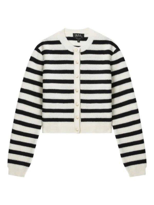 Chiếc cardigan sọc ngang A.P.C Man✨n giúp nàng nổi bật dù chỉ mix cùng quần jeans đơn giản. Chất len mềm, ấm áp mà vẫn nhẹ tênh – diện đi làm hay đi chơi đều xinh