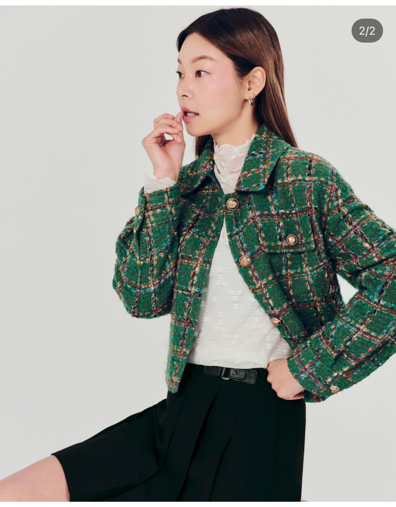 • Dáng cropped jacket cân đối, giúp nâng tỷ lệ cơ thể, đặc biệt hợp khi phối cùng chân váy chữ A, quần cạp cao hoặc váy liền.