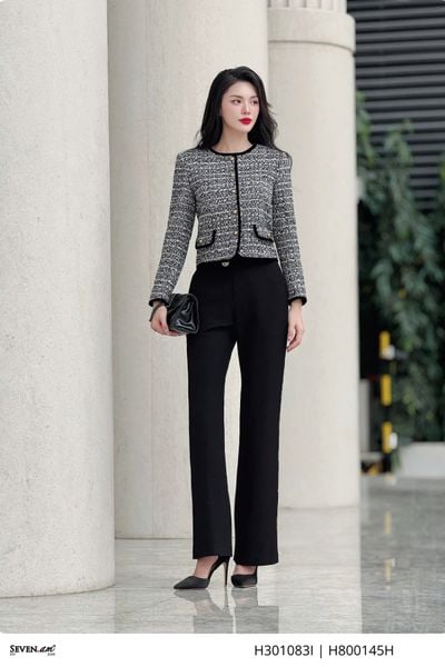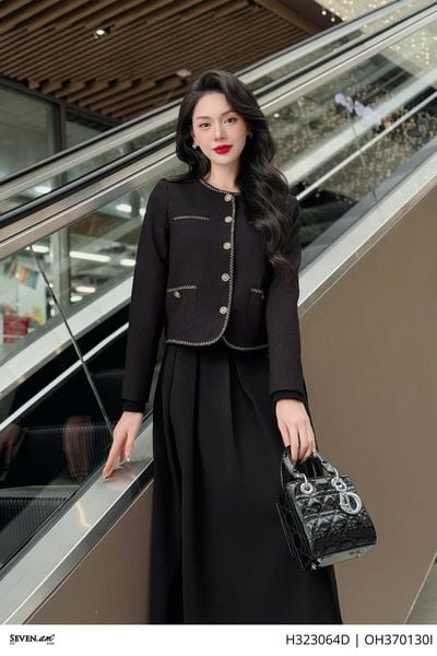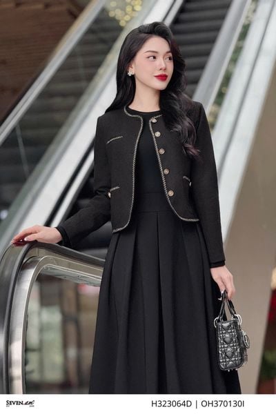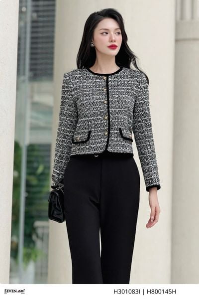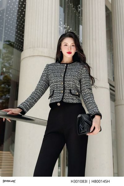 THÔNG TIN SẢN PHẨM:- Kiểu dáng: Áo khoác lửng- Chất liệu vải: Tweed phối viền nhung đen- Size: M, L, XL, XXL- Màu sắc: hoạ tiết phẩy đen trắng- Xuất xứ: Thời trang Seven.AMBảo quản: Nên giặt tay bằng nước lạnh, hạn chế giặt bằng nước nóng quá 40 độ C. Giặt riêng với các sản phẩm dễ phai màu. Bảo quản nơi khô thoá