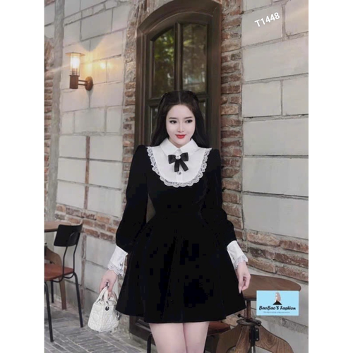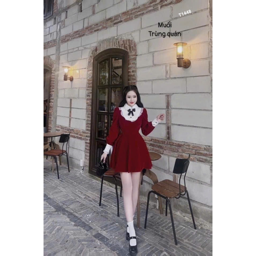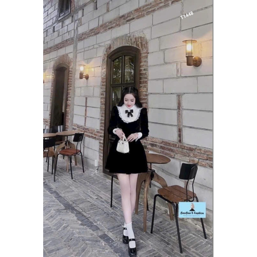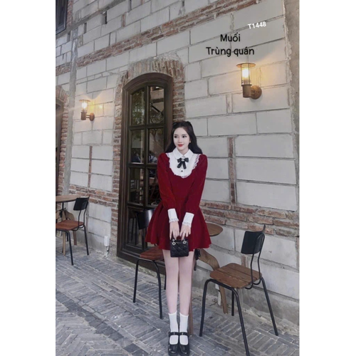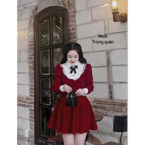 [🇻🇳]Đầm nhung xòe phối cổ lụa viền ren tay dài chân váy xếp ly có quần trong nhung phối lụa T1448 – 🇻🇳🇻🇳 , SKU – T1448 – sendo.vn🇻🇳🛒Top1Shop🛒🇻🇳🛍🛒
