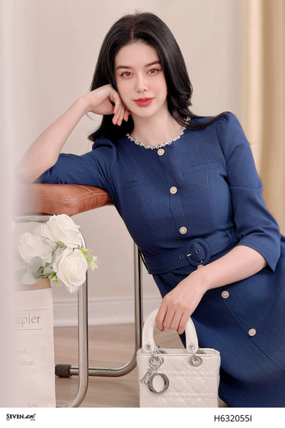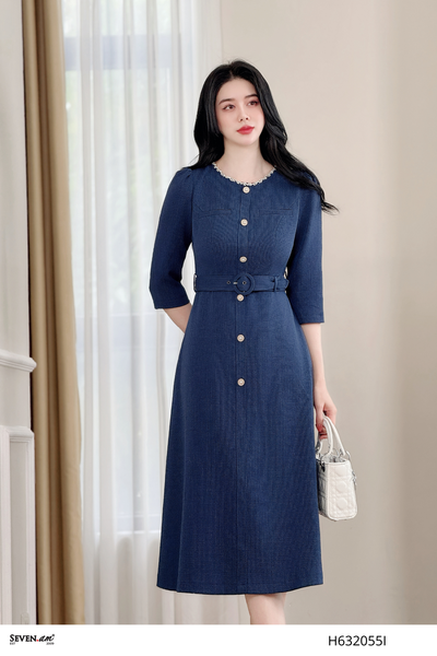 [🇻🇳]Đầm xoè cúc dọc kèm đai xanh navy thời trang nữ Seven.AM H632055I – 🇻🇳Seven.AM🇻🇳 , SKU – – sevenam.vn🇻🇳🛒Top1Shop🛒🇻🇳🛍🛒