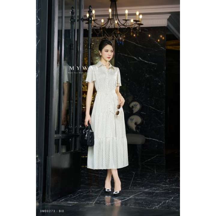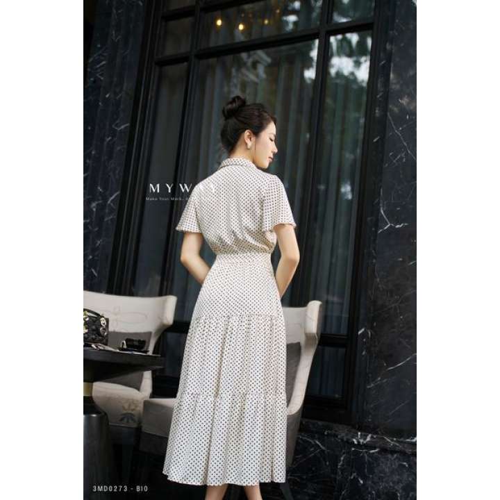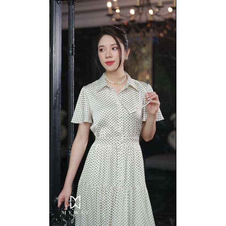 MYWAY Họa tiết chấm bi Cổ Đức Tay ngắn Designer Luxury Party. Đầm xòe, kiểu dáng: trên ôm dưới xòe, cổ Đức dài qua bắp. Tay ngắn. Có lót. Tinh tế với họa tiết vải. Họa tiết: Chấm bi. Màu có sẵn: nền be chấm bi đen. Được thiết kế từ chất liệu LỤA nhập khẩu cao cấp đã qua xử lý và tạo form dáng quyến rũ, hiện đại. Mang lại sự thoải mái cho thượng khách, toát lên vẻ thanh lịch, phong cách hiện đại, khả năng phối đồ cao. Thông số sản phẩm size M: Dài thân 120 cm. Dài tay 21 cm. Vòng ngực 90 cm. Vòng eo 70 cm. Độ co giãn: Không. Độ nhàu: Vừa phải. Độ dày: Vừa phải. Đầm xòe, kiểu dáng: trên ôm dưới xòe, cổ Đức dài qua bắp. Tay ngắn. Có lót. Tinh tế với họa tiết vải. Họa tiết: Chấm bi. Màu có sẵn: nền be chấm bi đen. Được thiết kế từ chất liệu LỤA nhập khẩu cao cấp đã qua xử lý và tạo form dáng quyến rũ, hiện đại. Mang lại sự thoải mái cho thượng khách, toát lên vẻ thanh lịch, phong cách hiện đại, khả năng phối đồ cao. Thông số sản phẩm size M: Dài thân 120 cm. Dài tay 21 cm. Vòng ngực 90 cm.