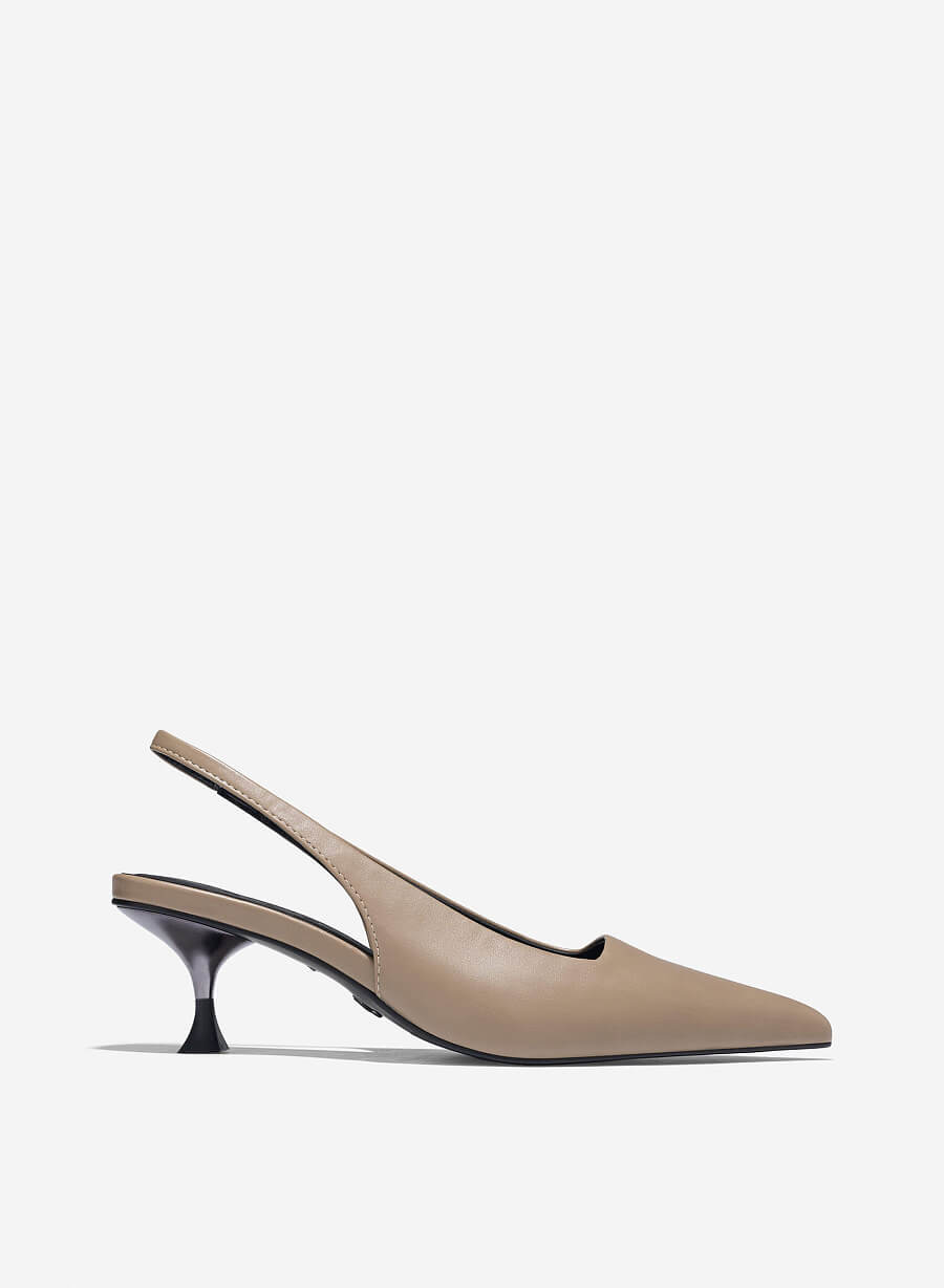 Giày Bít – Giày slingback mũi nhọn nhấn gót hiệu ứng aluminium – BMN 0659 – Màu be đậm Vascara